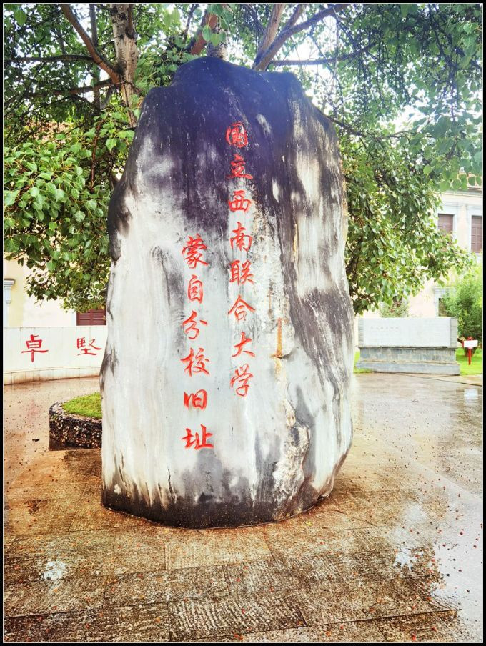 抗日战争期间,西南联合大学迁至 云南 ,其中文法学院设在滇南重镇 蒙自 ,朱自清,闻一多,冯友兰等著名教授均在 蒙自 任教,西南联大文法学院在 蒙自 的校舍,包括 蒙自 租界址的 蒙自 海关, 法国 临时署和哥胪士洋行和武庙街周柏斋的住宅颐楼等处。