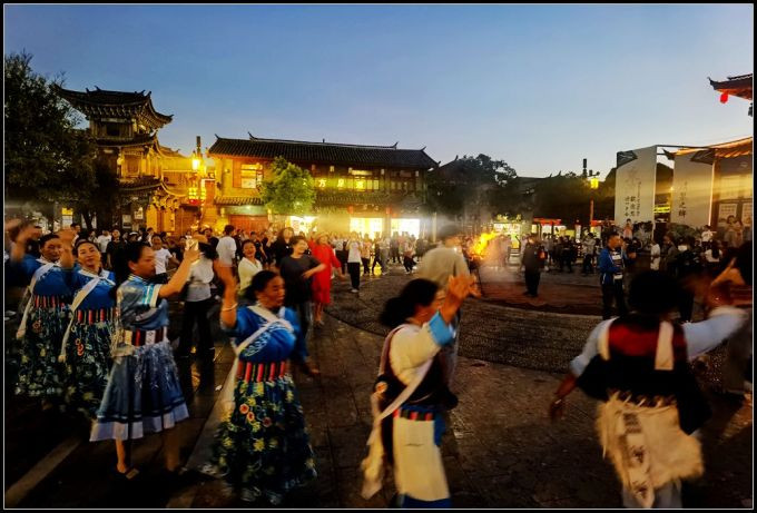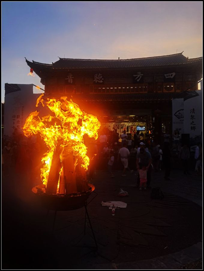 束河古镇 束河古镇 束河古镇四方听音广场中央燃起了熊熊的篝火,人们围着篝火跳起了欢快的纳西族锅庄舞。 束河古镇束河古镇束河古镇