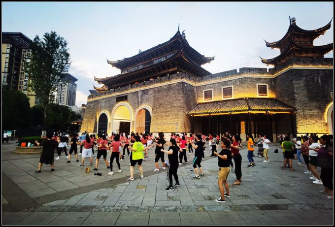 晚上的 红河 水乡非常热闹,这是当地居民在跳广场舞。