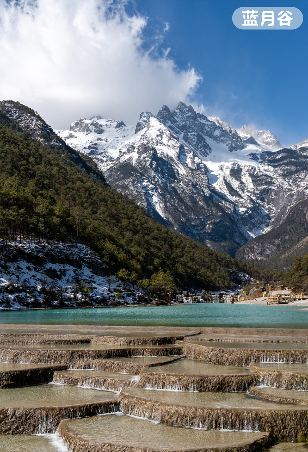 蓝月谷俗称“ 白水 河”,以其巍峨壮美的雪山、湛蓝如玉的湖水与雄齐秀丽的峡谷风光享誉世界,因湖水湛蓝、山谷呈月牙状而得名,相传是 英国 作家詹姆斯·希尔顿笔下《消失的地平线》中蓝月亮山谷的原型。