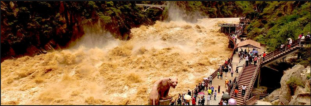 万里长江第一大峡谷- 虎跳峡,位于云南省迪庆藏族自治州香格里拉市虎跳峡镇东环线,因曾有猛虎借助江心巨石跃过金沙江的传说而得名,它以雄、奇、险、峻闻名于世。虎跳峡是从丽江玉龙雪山和香格里拉哈巴雪山之间穿过的一条巨大的峡谷,它距香格里拉市近100公里,距丽江市约80公里。峡谷全长20余公里,峡口海拔1800米,海拔高差3900米。虎跳峡是排名世界第四、中国第二的大峡谷,是国家级AAAA级旅游景区,由上、中、下虎跳峡及高路徒步线组成。