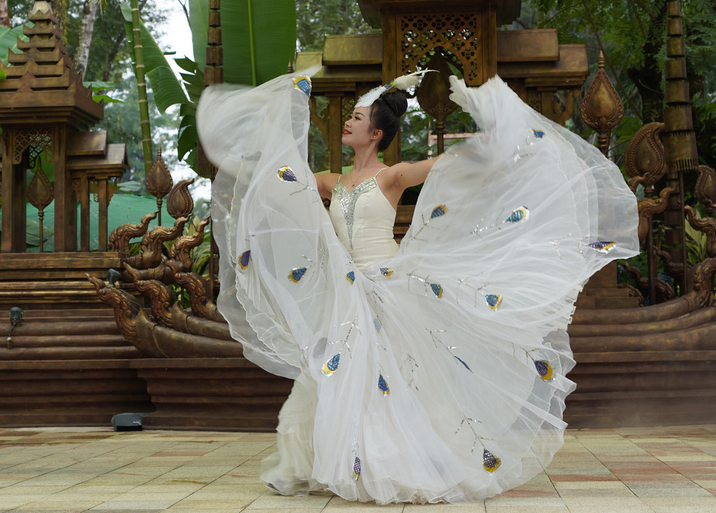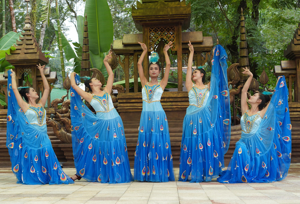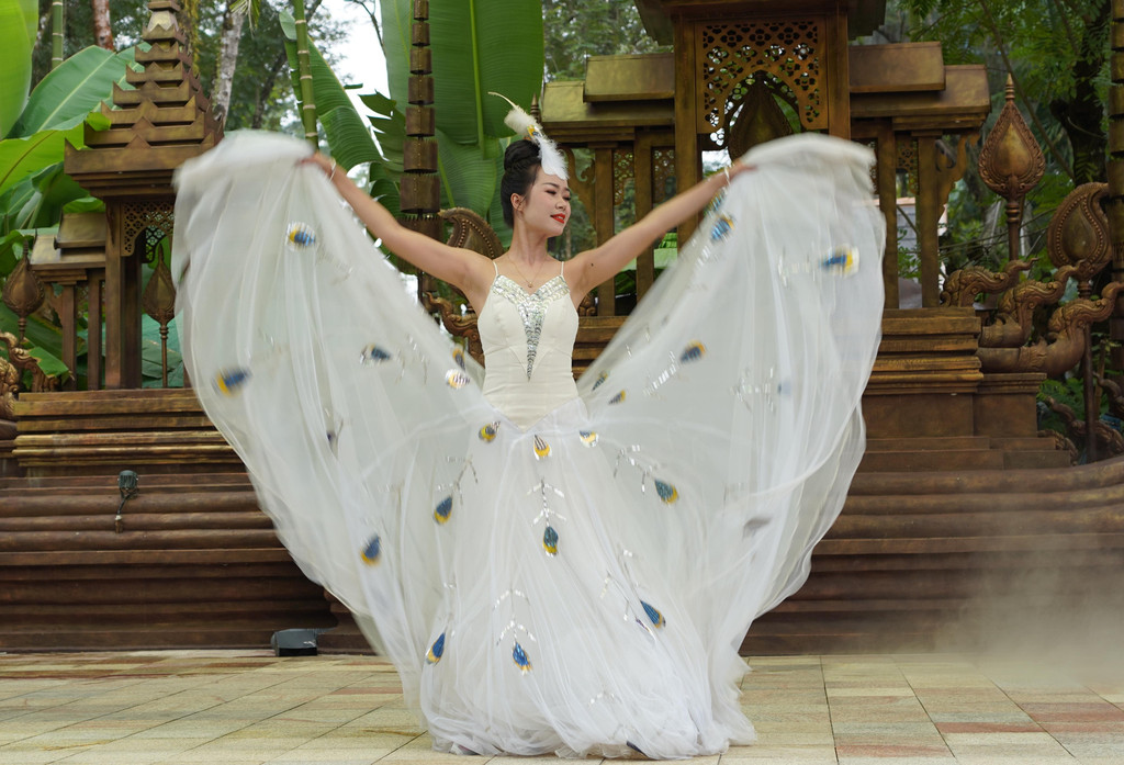 步行到【孔雀园】(往东 360米,8分钟),观看孔雀舞表演;