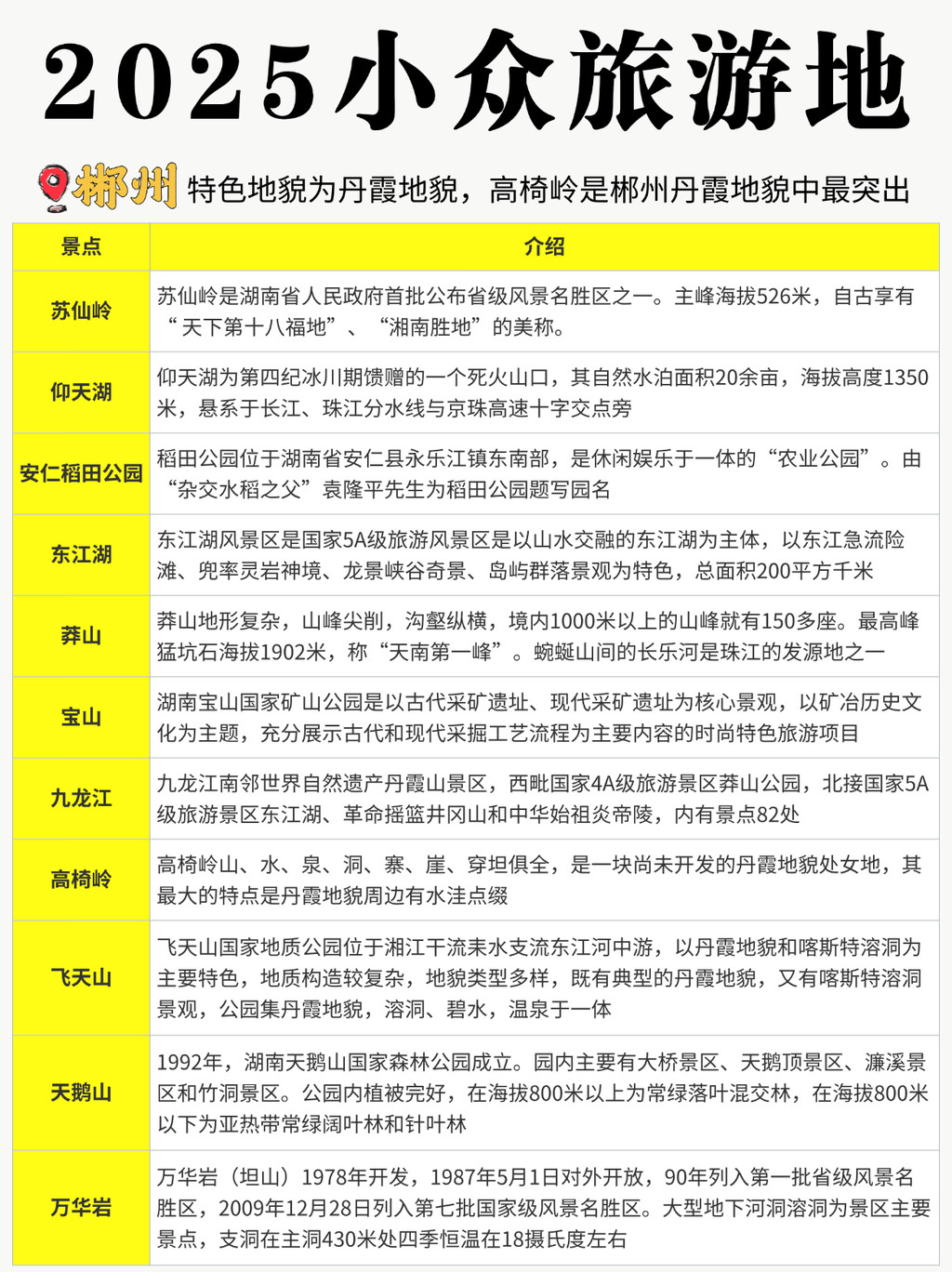⑧郴州:特色地貌为丹霞地貌,高椅岭是郴州丹霞地貌中最突出