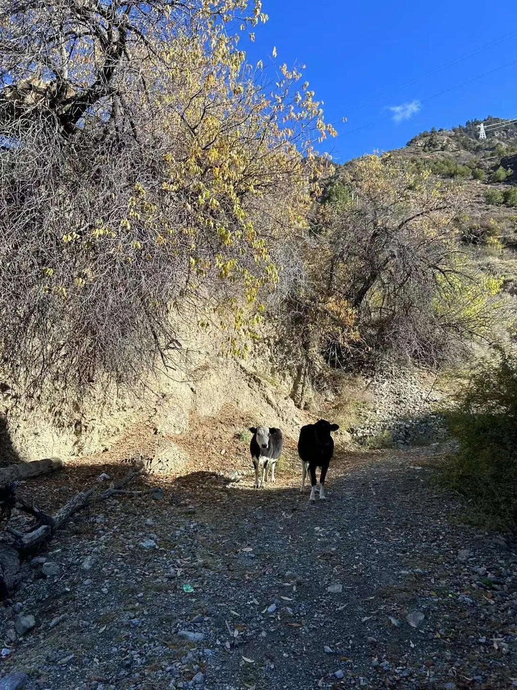 本来是打算来偷葡萄吃的,无干预的“野地”里我敢直接吃,可惜这个冬月肯定是采收结束了,没的吃。两头贪吃的黑白姐妹牛正在等葡萄园的废弃枝叶,我乖乖排队。在这个rain shadow的山谷,冷凉少食,对酿酒葡萄当然高级,对牛来说,葡萄藤也是鲜美的。因为两姐妹肤色对比度有点大,我帮忙拍的合影真是不敢看。但无论如何,我直接偷偷承认,她们的粪便是美丽的,农夫拿来发酵,重新还给葡萄田。还有,我偷吃的刺梨,那香甜,她们亦有顺便贡献。