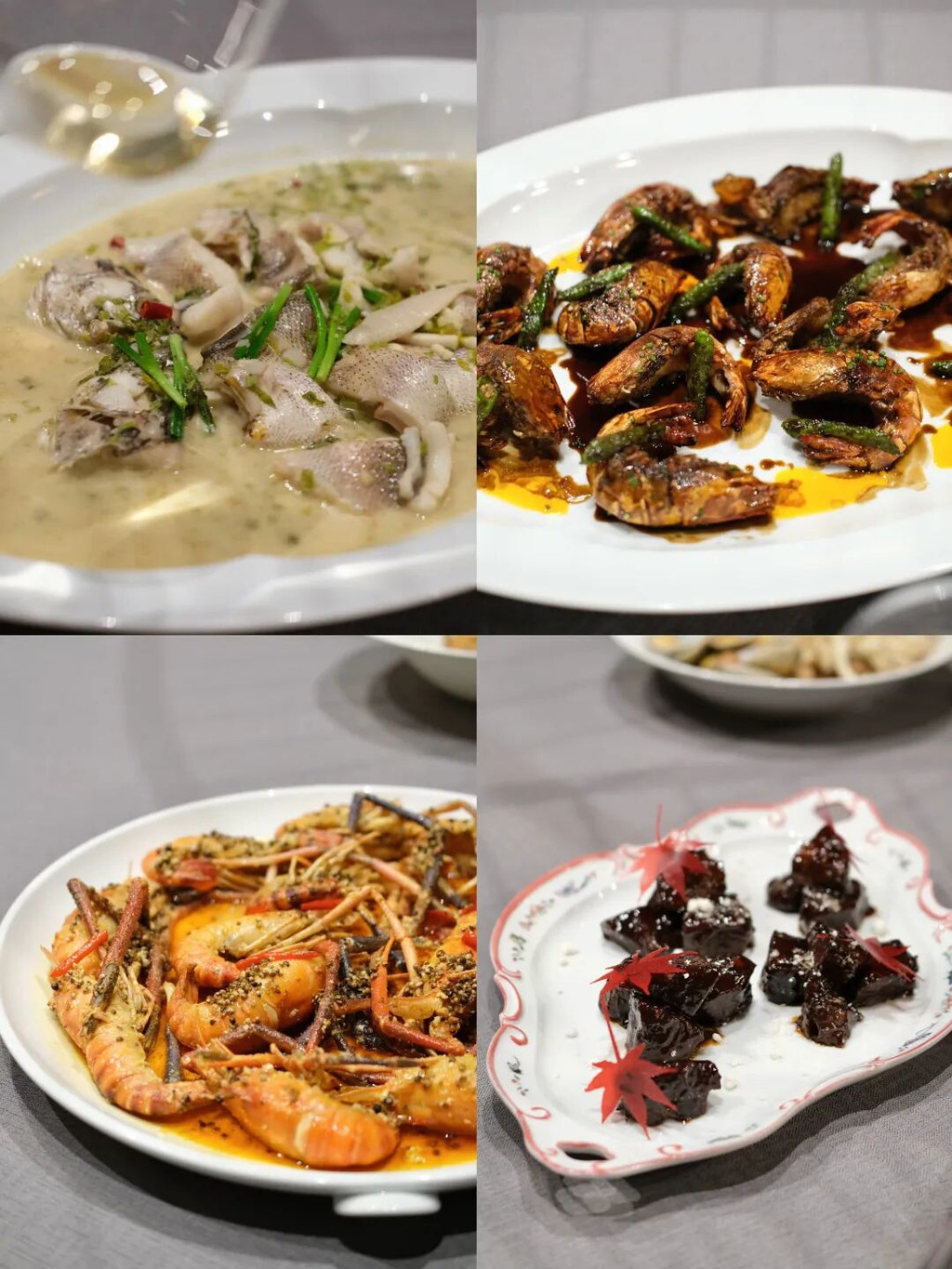 雪菜笋丝烧米鱼、大虾杭椒油爆、白胡椒酱焖太湖壹号、金牌小牛肉