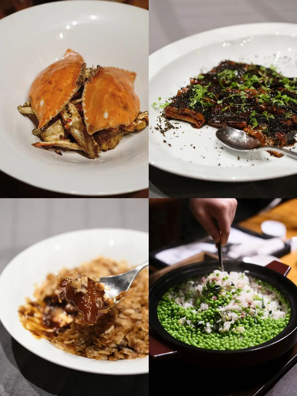 马友咸鱼炒白蟹、绍兴干莱焖鳗、浓味酥葱糯猪手、蜜豆咸肉菜饭