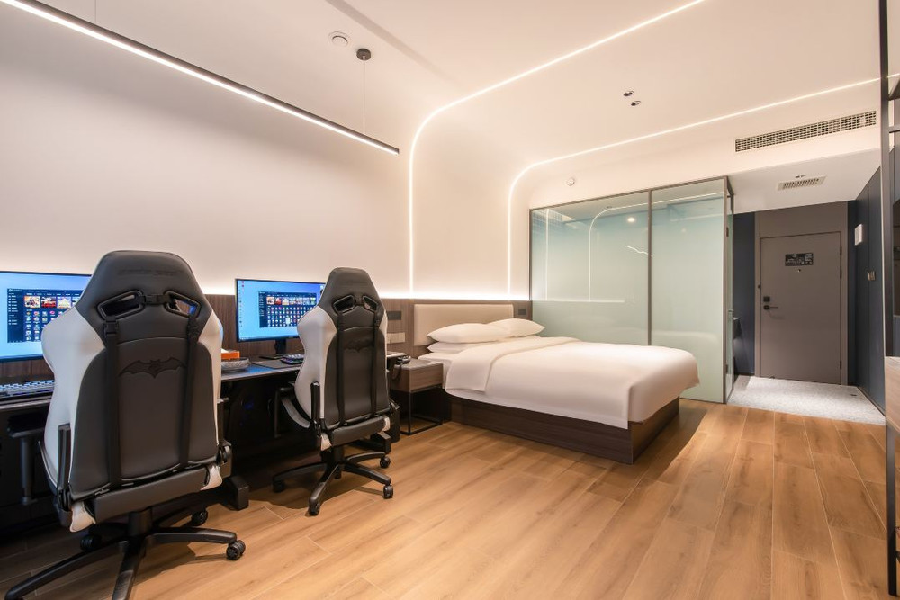 至于晚上回来,你问我干嘛,当然看欧洲杯了,还有什么比游览一天景区,躺在床上看欧洲杯,吹着空调,喝着冷饮,打着LOL,还舒适的事情了,你问我在哪有这么舒适的酒店,我不告诉你这酒店叫瑟文摩登街电竞酒店!