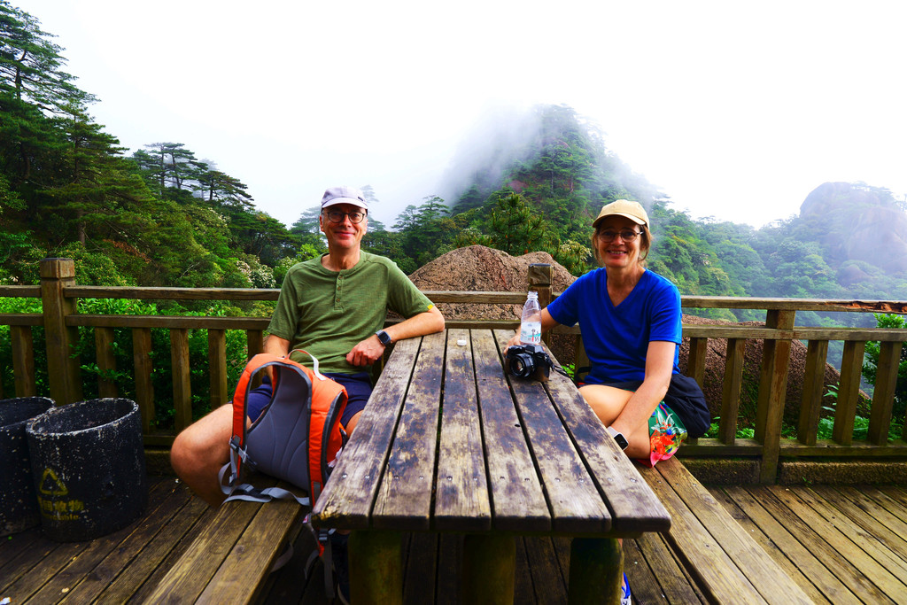 2个洋游客坐在女神宾馆峰休息区休息,语言不通,拍完我给他们竖了个大拇指。