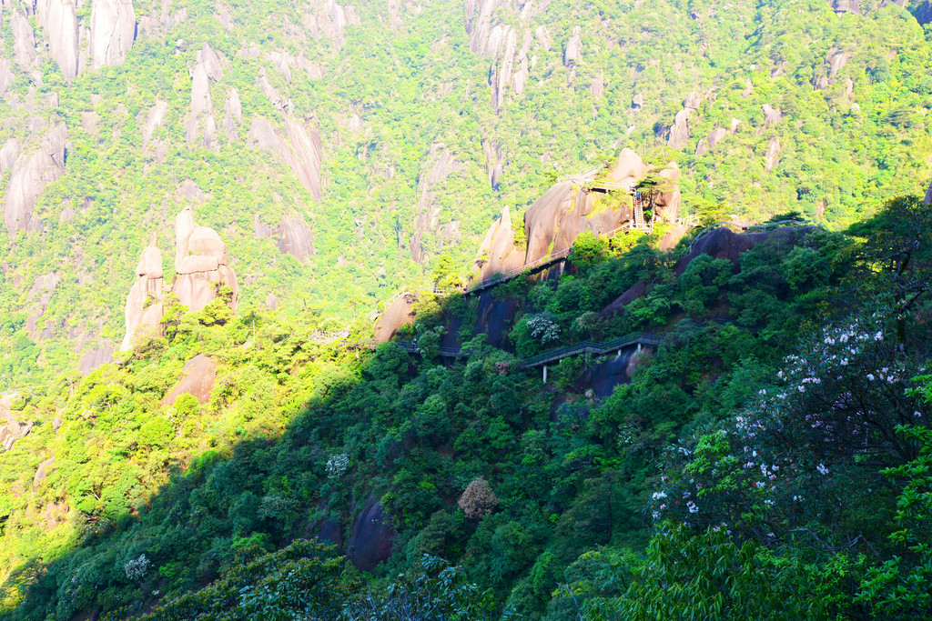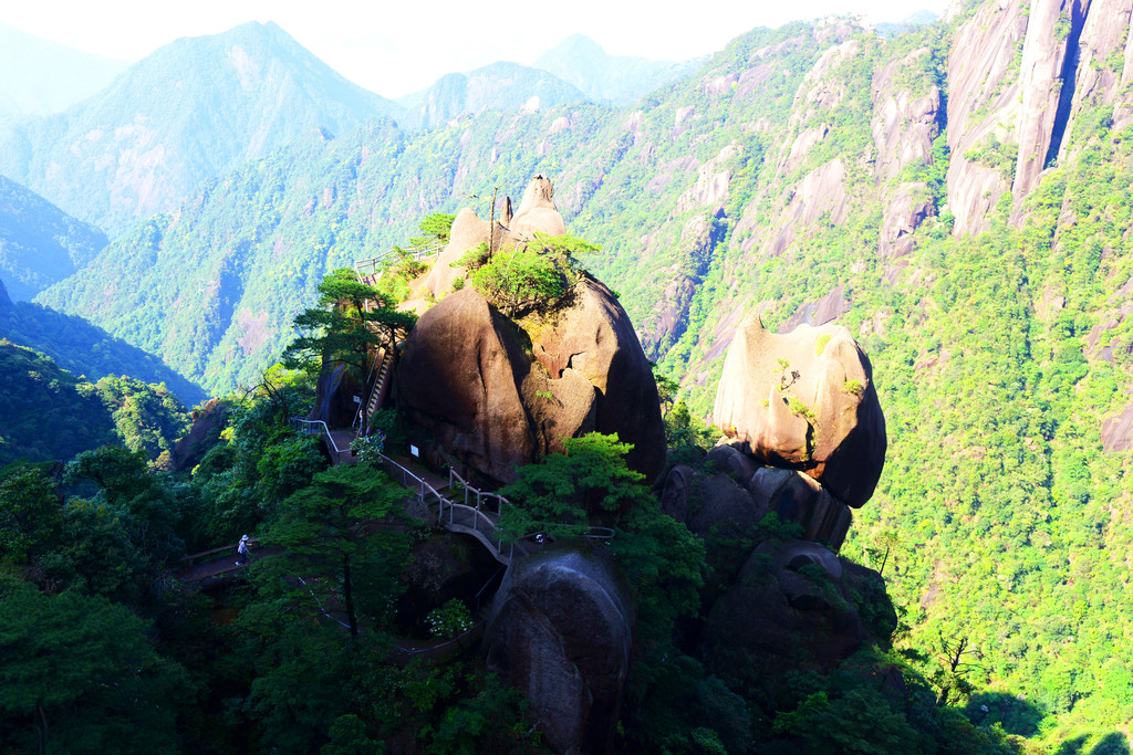 中国是花岗岩地貌分布最多的国家,大家熟悉的黄山、九华山、华山都属于花岗岩山体,这些名山均不乏让人拍案叫绝的奇峰怪石,如黄山的猴子观海、九华山的犀牛望月、华山的劈山救母......但要论景观的丰富性和形象生动,它们都被三清山比了下去。