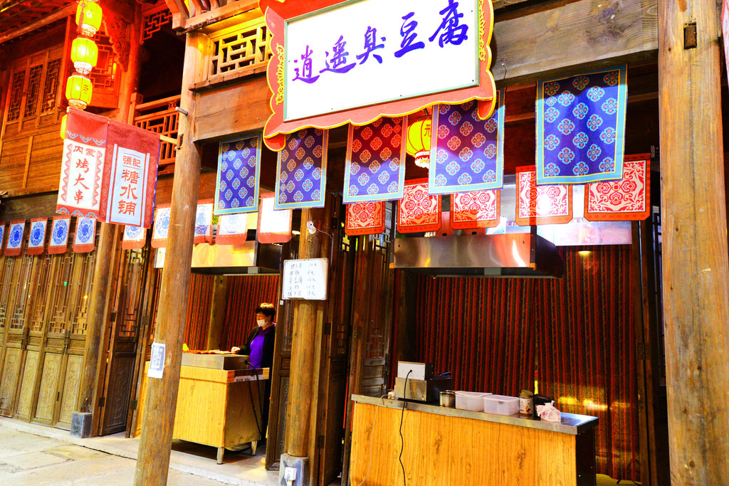 古街是建在一栋宏大的建筑内,室内有两街两巷,有历史文化的翘角牛肉、有非物质文化传承人制作的糖人、有当地特色的芋饺等等,游客可以边逛边吃边体验,对磨豆腐感兴趣的游客可以自己动手磨一磨,就可以吃上自己制作的豆腐。对陶艺感兴趣的游客可以动手制作一款属于自己的产品。