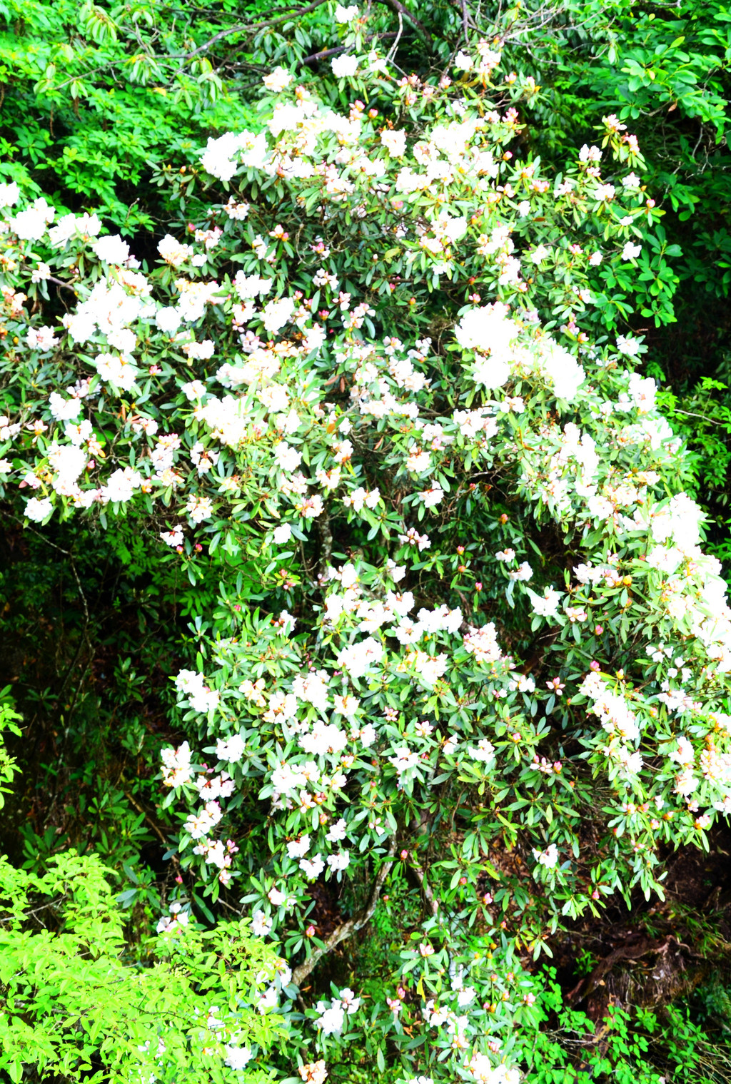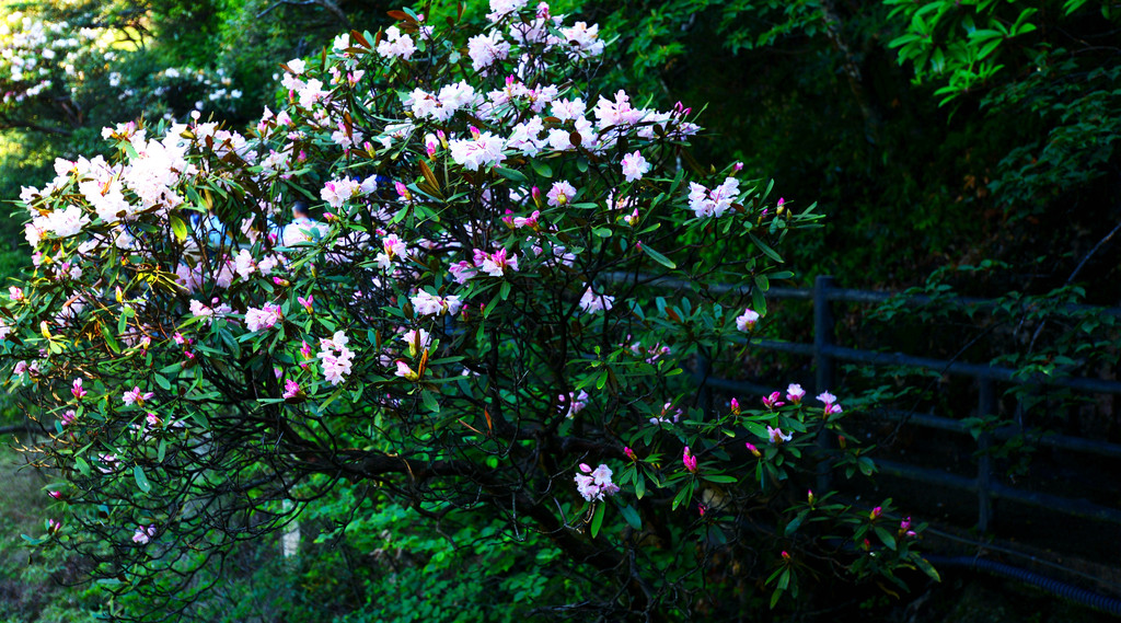这里的杜鹃花开放得气势正足,我们能看到一株一株盛放的花儿,为山谷抹上了粉白的胭脂~