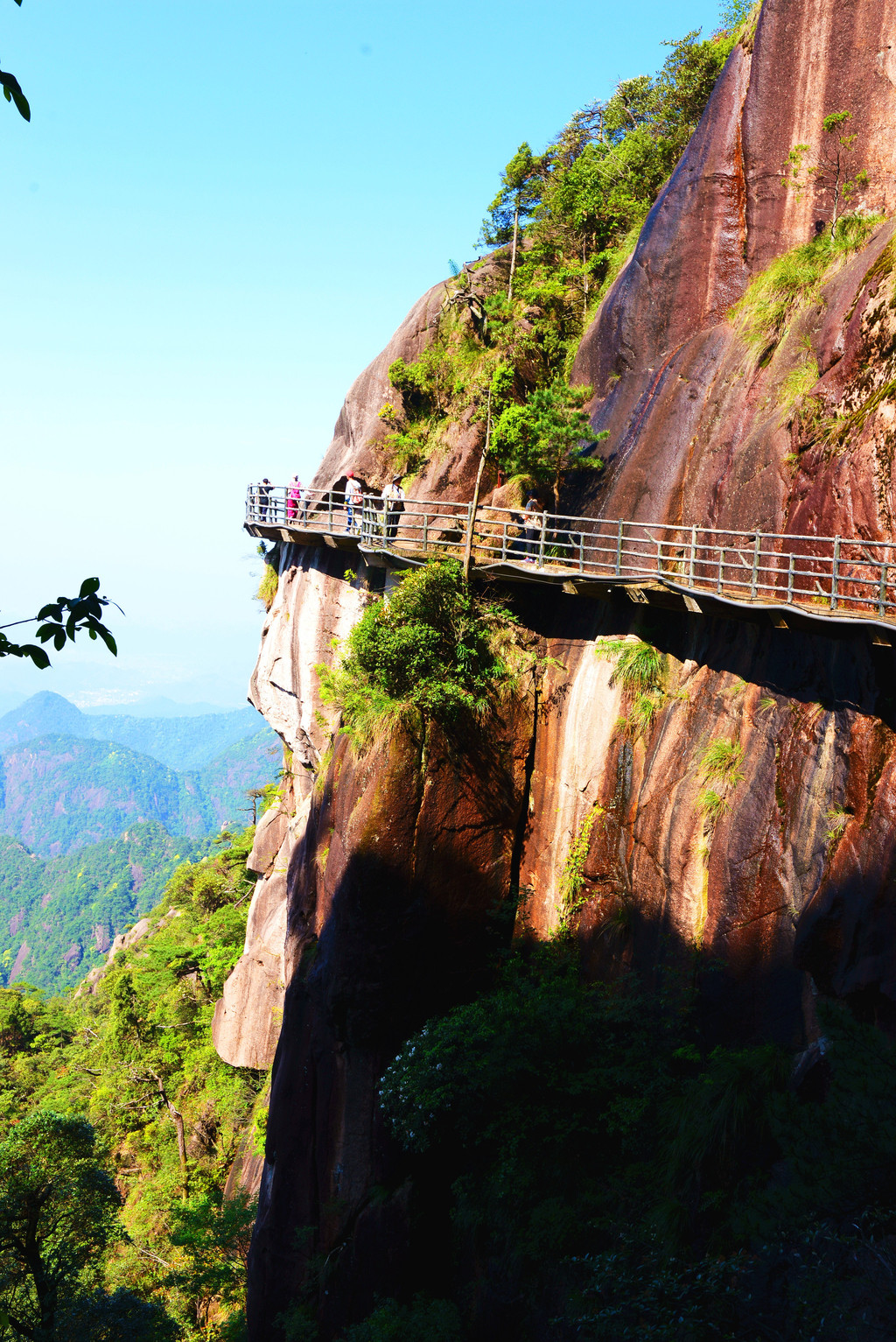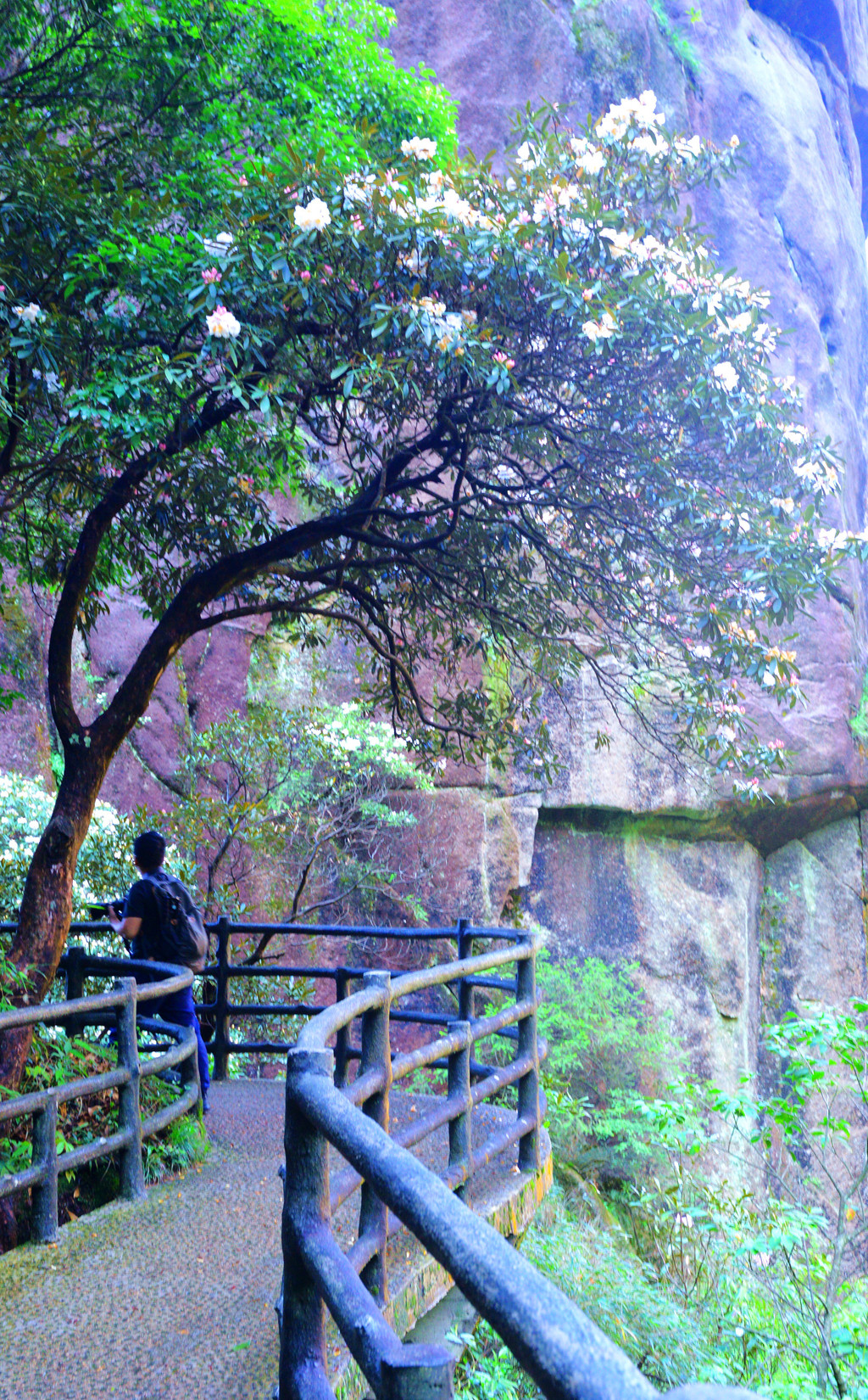 长在悬崖上的杜鹃花再次在栈道旁欢送我们。