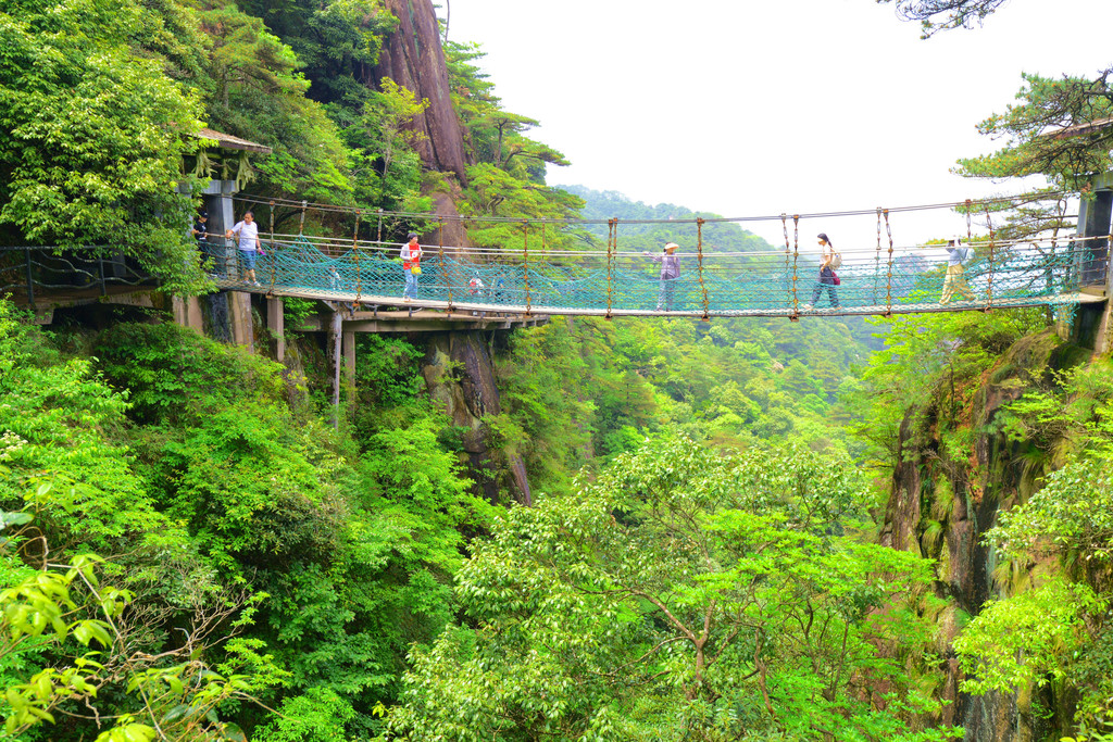 来到飞仙谷,这是三清山气势最为磅礴、地形最为险峻的花岗岩峡谷,感觉是只有在梦里才会出现的仙境,峡谷全长2500米,切割深度超过300米,两侧是悬崖峭壁,人不能行,只有仙人可以飞跃,故称为“飞仙谷”。