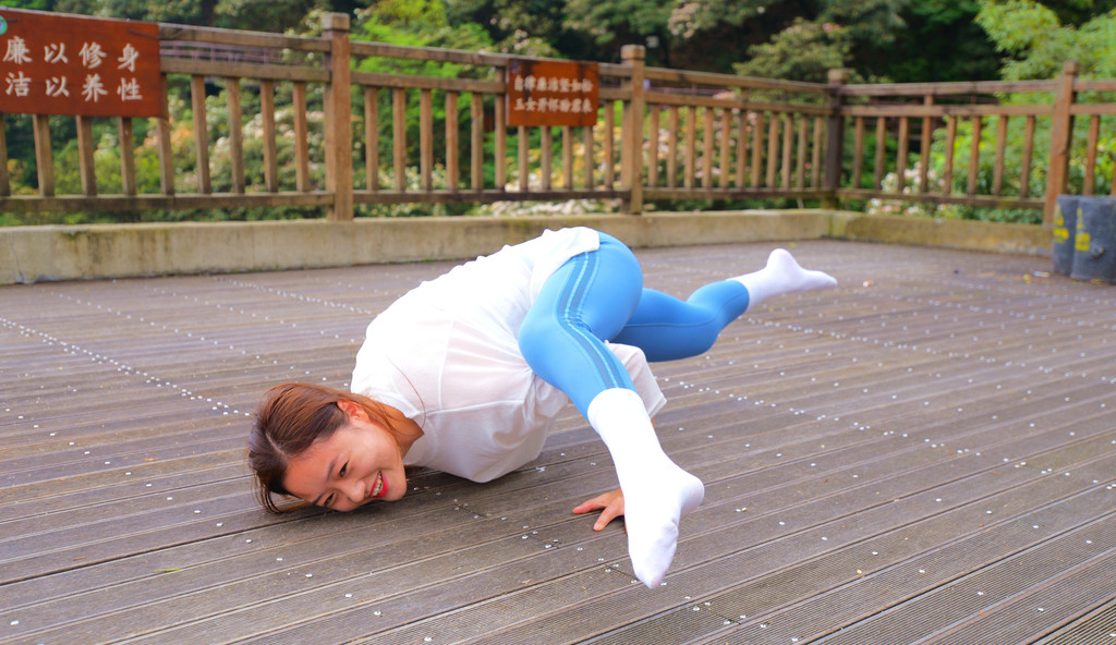 上饶市5位女神登上三清山,来到女神峰观景台上练瑜伽,这是女神与女神的交流,这是人与天的对话,四周成片盛开的杜鹃花映衬着她们粉嫩的笑脸。