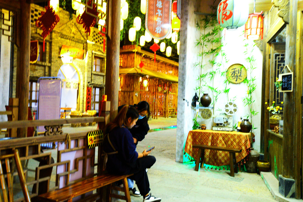 白天的街区有些冷清,酒肆、茶坊、戏台、美食铺子,穿行其中,仿佛穿越在民囯街头,可以一秒入戏。