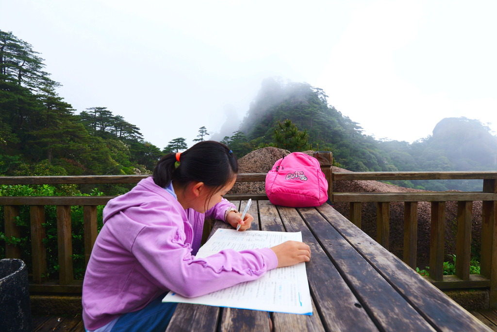 经询问,她来自长沙,是随父母来三清山旅游的。
