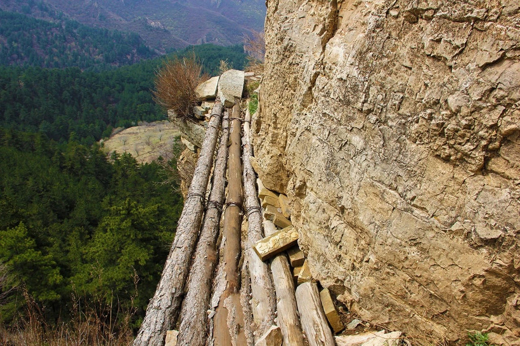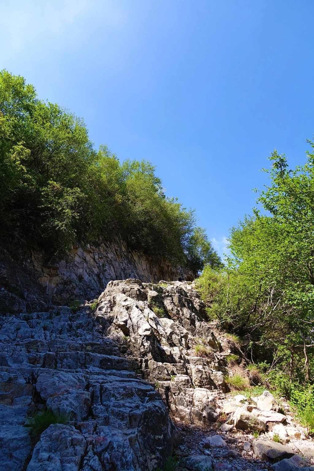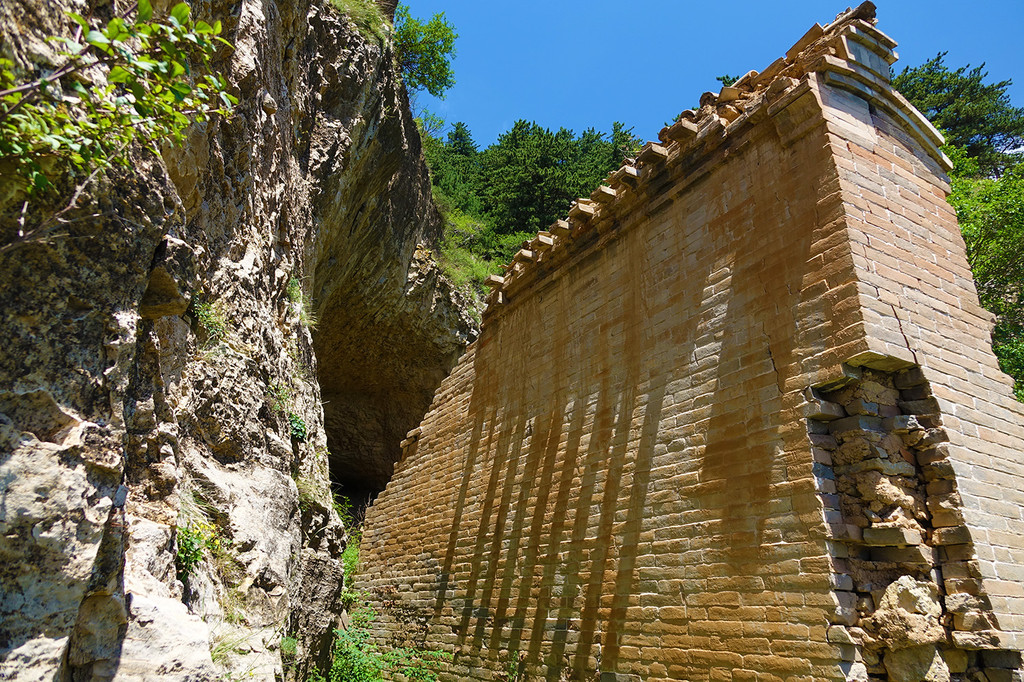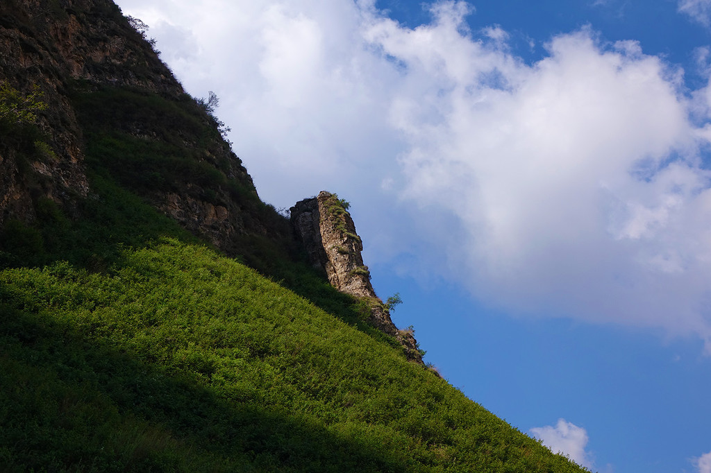 要想见到洞窟,需要攀登到山顶,夏日登山一定要趁着温度还没有攀升就早早地出发,顺着宋家庄镇上苏庄村就到了登山口。还没到山脚就看到巍峨的高山,还是很有震慑力的。