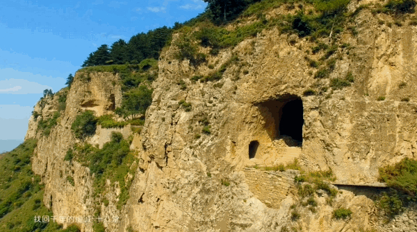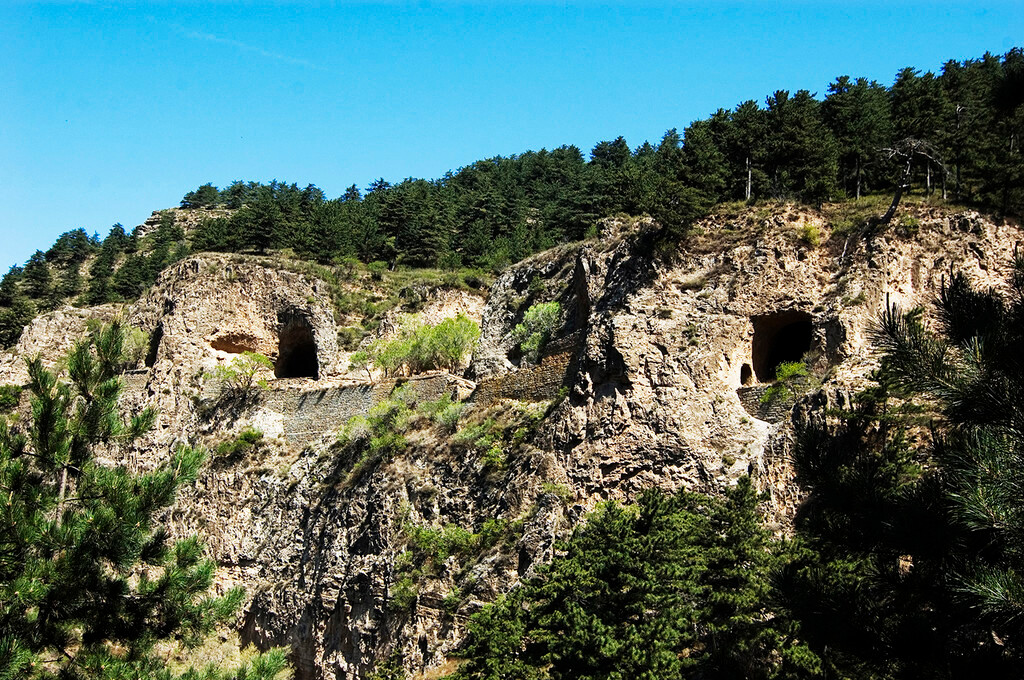 这时候,在松林掩映间,洞窟就已经可以看到了,果然是一整排,神秘感十足。