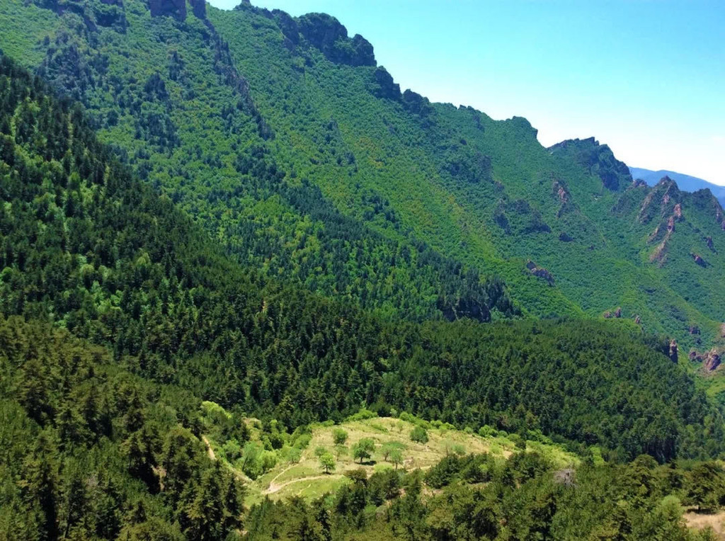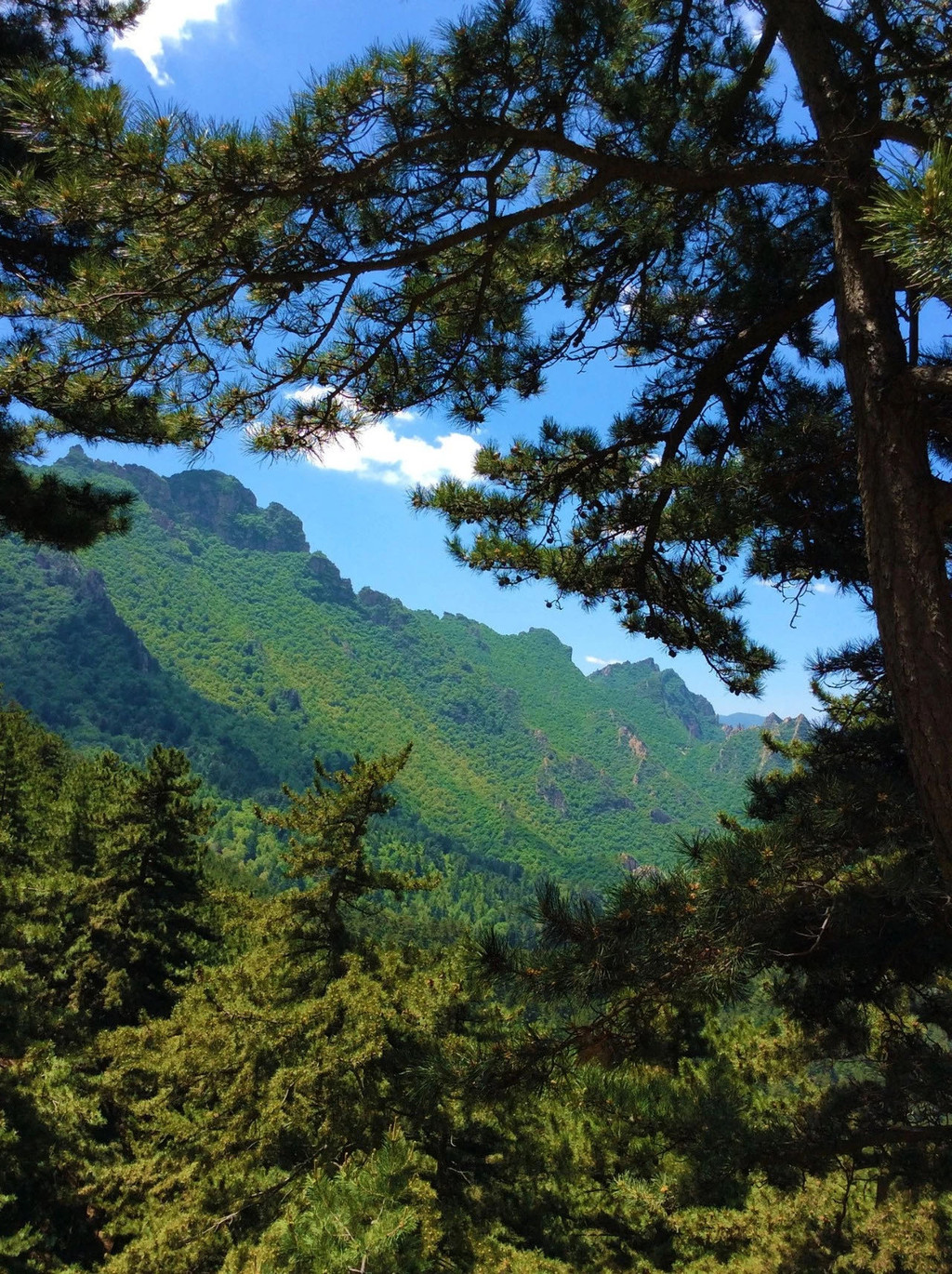 最吸引眼球的是一大片原始松林,从山峰铺向山谷,仿佛给山盖了一床绿被子,满目皆是翠绿,还有阵阵松涛声,像海浪一样,夏日清新感十足!