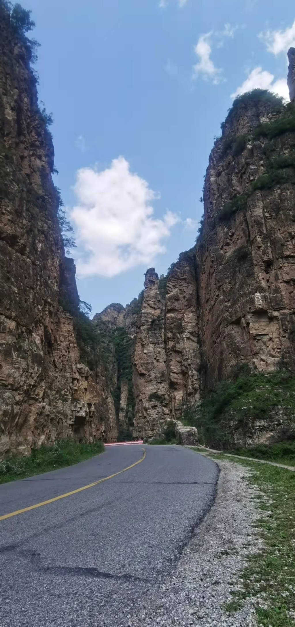 一线天,两壁峻峭,一线微通,最宽处有千米,窄处三到五米。就像用利斧子劈开一般,抬头望去天空被大山包围,只剩一线,所以被称为一线天。