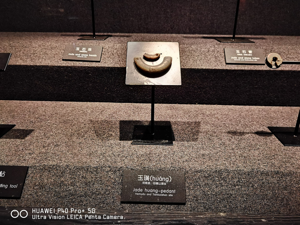 比较著名的是双鸟朝阳纹牙雕,长16.6厘米、残宽6.3厘米、厚1.2厘米。制作精良的当属玉璜了,