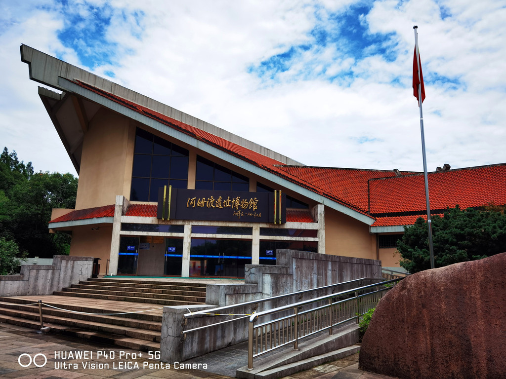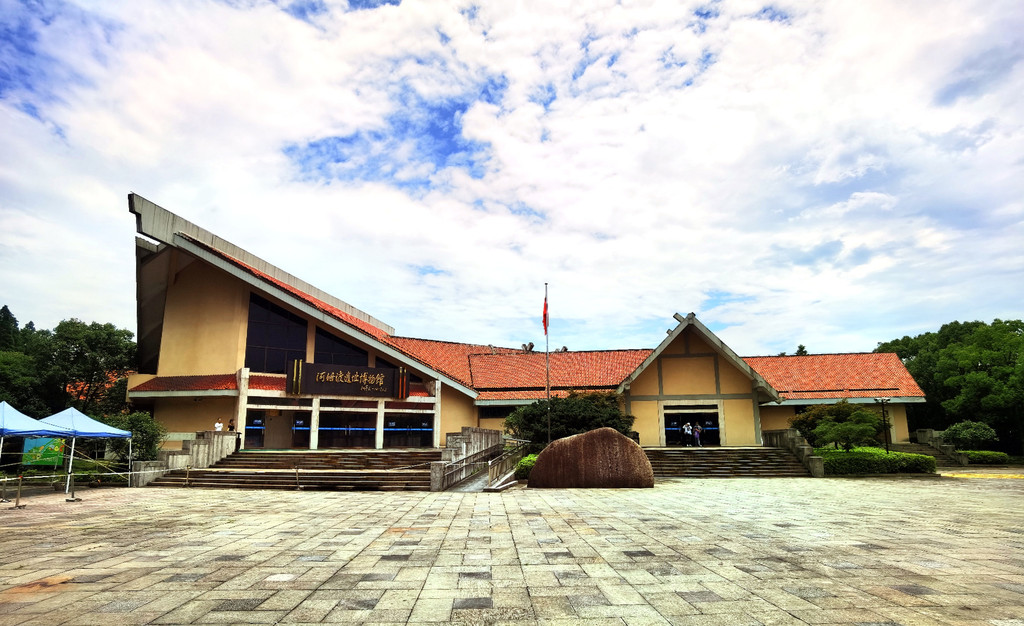 河姆渡遗址博物馆位于余姚市河姆渡镇河姆渡村的东北,是中国南方早期新石器时代(约7000—5000年前)遗址。遗址总面积达4万平方米,上下叠压着四个文化层分别为:第四文化层约7000—6500年前,是中国已发现的最早的新石器时代地层之一,第三文化层约6500—6000年前,第二文化层约6000—5500年前,第一文化层约5500—5000年前。河姆渡遗址出土的陶片达几十万片,还有陶器、骨器、石器以及植物遗存、动物遗骸、木构建筑遗迹等大量珍贵文物。1973年夏,当地农民建设排涝工程掘土时,河姆渡遗址被发现。同年,浙江省文管会、浙江省博物馆对河姆渡遗址进行了首次大规模发掘。河姆渡遗址全面反映了中国原始社会母系氏族时期的繁荣景象,为研究当时的农业、建筑、纺织、艺术等东方文明,提供了极其珍贵的实物佐证,是中国建国以来最重要的考古发现之一。河姆渡遗址发现的栽培稻谷和大面积的木建筑遗迹、捕猎的野生动物和家养动物的骨骸、采集的植物果实及少量的墓葬等遗存,为研究中国远古时代的农业、建筑、制陶、纺织、艺术和东方文明的起源以及古地理、古气候、古水文的演变提供了极其珍贵的实物资料。河姆渡遗址的发现,为中国史学界和考古界提供了依据,证明长江流域是中华文明的重要发源地之一,更是把中国的水稻栽培历史往前又推进了2000余年。