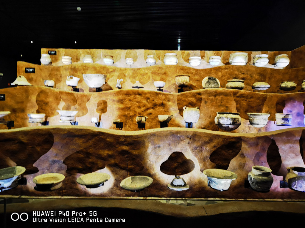 进入博物馆要核查健康码和测量体温。我们先到室内展区参观,这里陈列了大量的展品,辅以原始人类生活的场景。展品以陶瓷碎片以及陶器石器骨品木器为主,