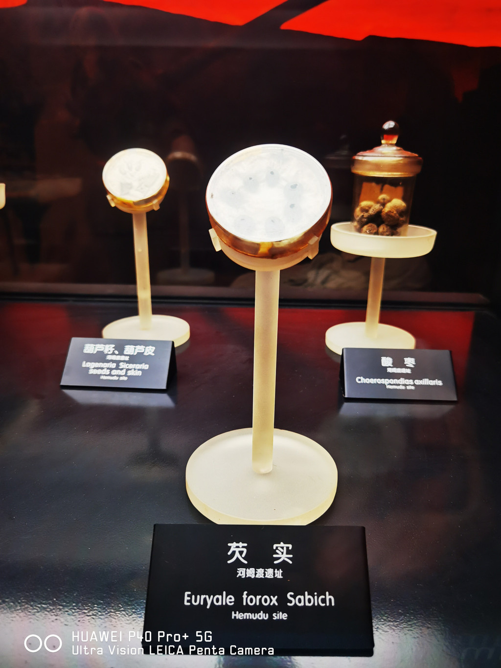 游览完河姆渡遗址,给人的感觉是远在7000年前的河姆渡人就已在食、宿、饮及文化方面有了较高的层次,深达一米的稻谷灰烬层,是中国水稻栽培起源的最佳例证,也说明河姆渡人已将稻米作为主要食物了。而干栏式建筑是更好地适应了当地的地理环境,大大提高了居住的条件。木结构水井则提升了饮用水的品质,在一定程度上摆脱了河流对于居住环境的限制。挖掘出的双鸟朝阳象牙蝶形器,反映了河姆渡人已开始崇拜太阳,在精神层面上有所寄托。