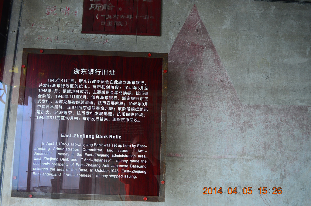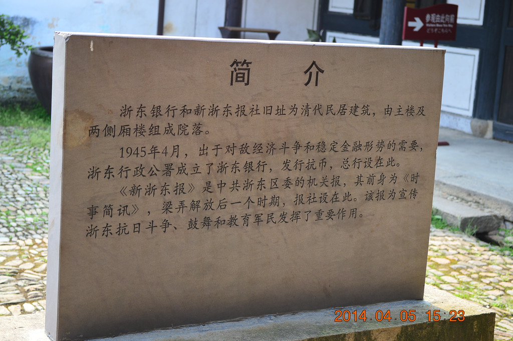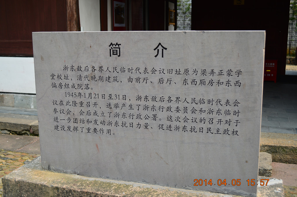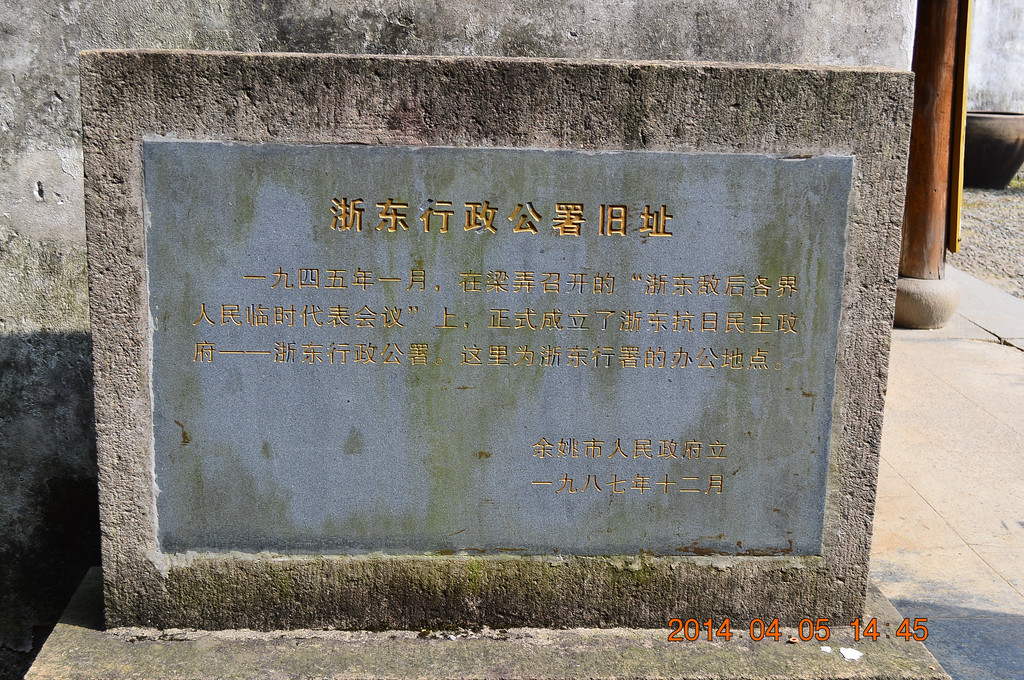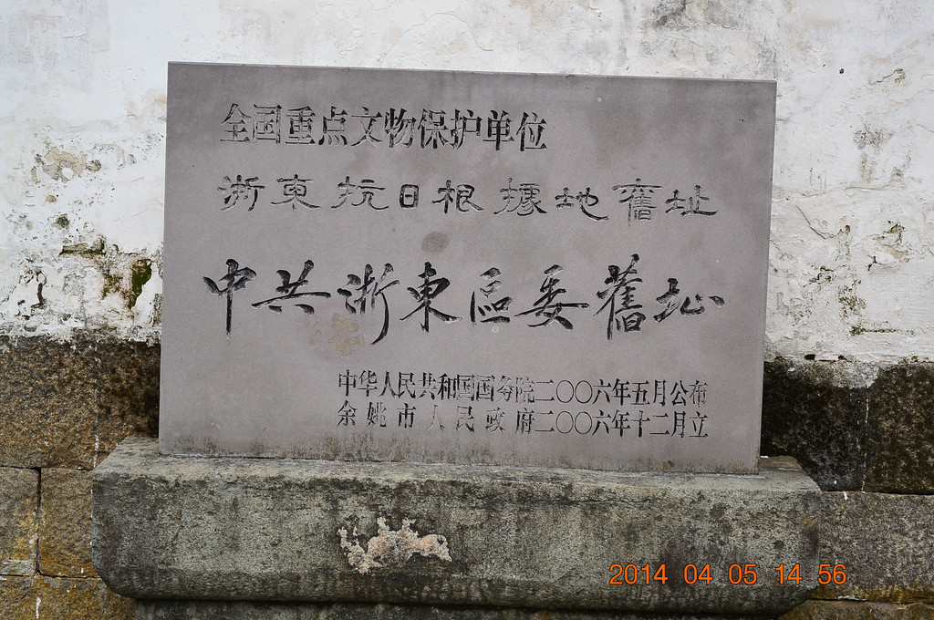 浙东抗日根据地旧址包括多处旧址,分布在余姚和慈溪两市。其中余姚市的部分,一是在横坎头村,以上所拍的均为横坎头村;二是在梁弄镇上,以下所拍是梁弄镇。横坎头村与梁弄镇相距约2公里。