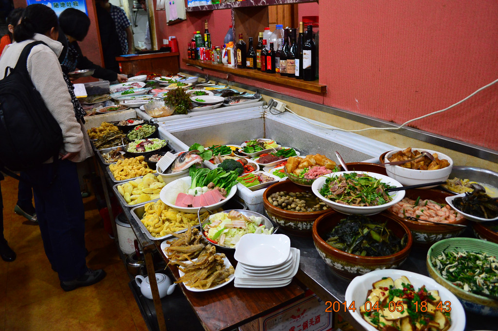 晚上在马园路附近的小餐馆,5个菜加上米饭,共135元。