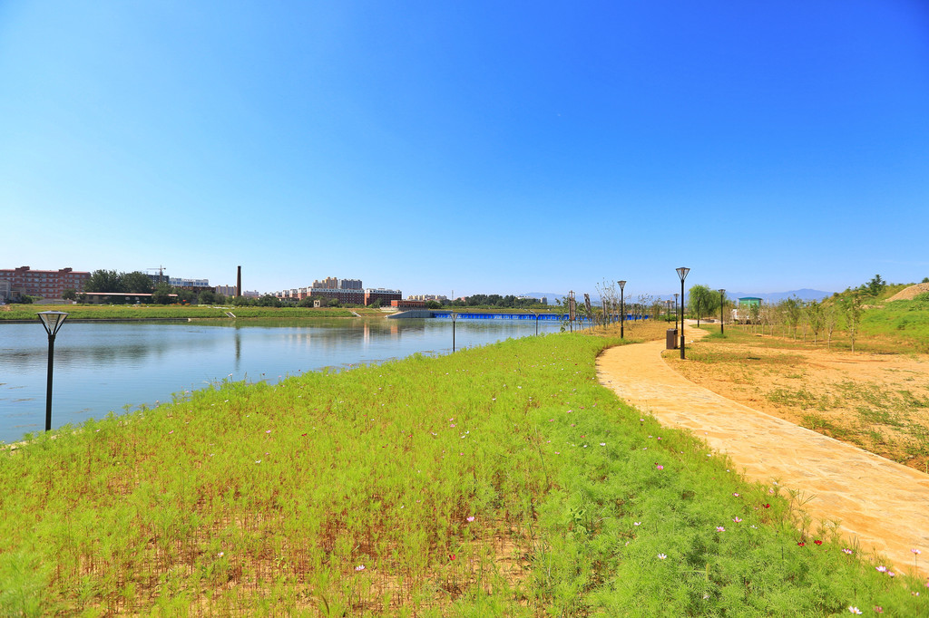 槐河河湿地公园位于赞皇县,沿槐河大桥进入赞皇县城,一条宽阔的河面映入眼帘,这个槐河景观带成为赞皇县当下最亮眼的风景线之一,阳光洒在河面上,碧波荡漾,两岸植被茁壮生长,绿草茵茵,像极了一副美丽的山水画,满满的诗情画意。