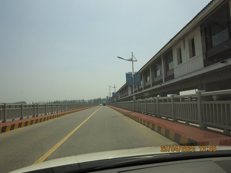 三河船闸是洪泽湖至高邮湖、宝应湖以及大运河的主要航道之一,大大缩短了淮河与大运河之间的航行距离,为里下河地区的防洪保安和经济繁荣作出了重大的贡献。离开三河闸沿着洪泽湖大堤继续开车,这里是号称最美三公里的大堤,一路开车到大堤景区南门,由于在修路,景区不让自驾进入,绕路开到了周桥遗址,这里十年前来过,这次隔着景区看来一眼。
