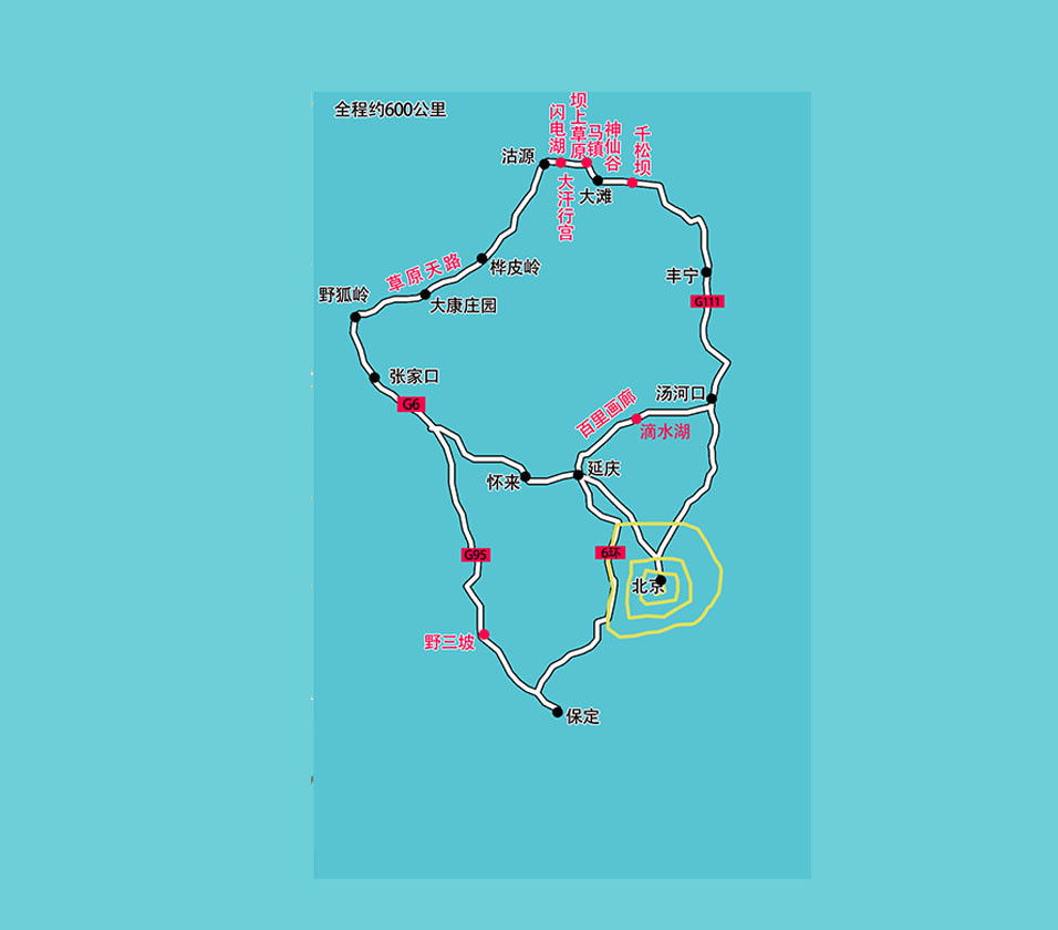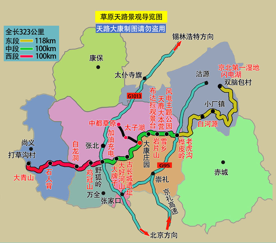 野狐岭进的朋友直接导航( 草原天路 野狐岭游客集散中心)也就是西进东出