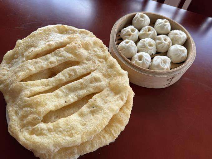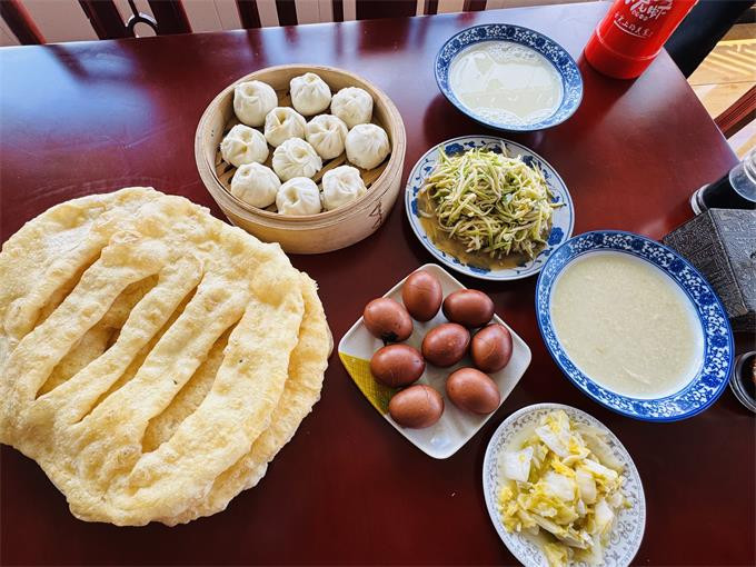 农家院早餐也特别丰盛:现炸的大油饼,小笼包,茶叶蛋,豆浆,小米粥,馄饨,还有刀削面,让每一位客人吃饱吃好!