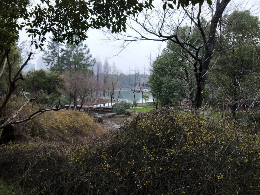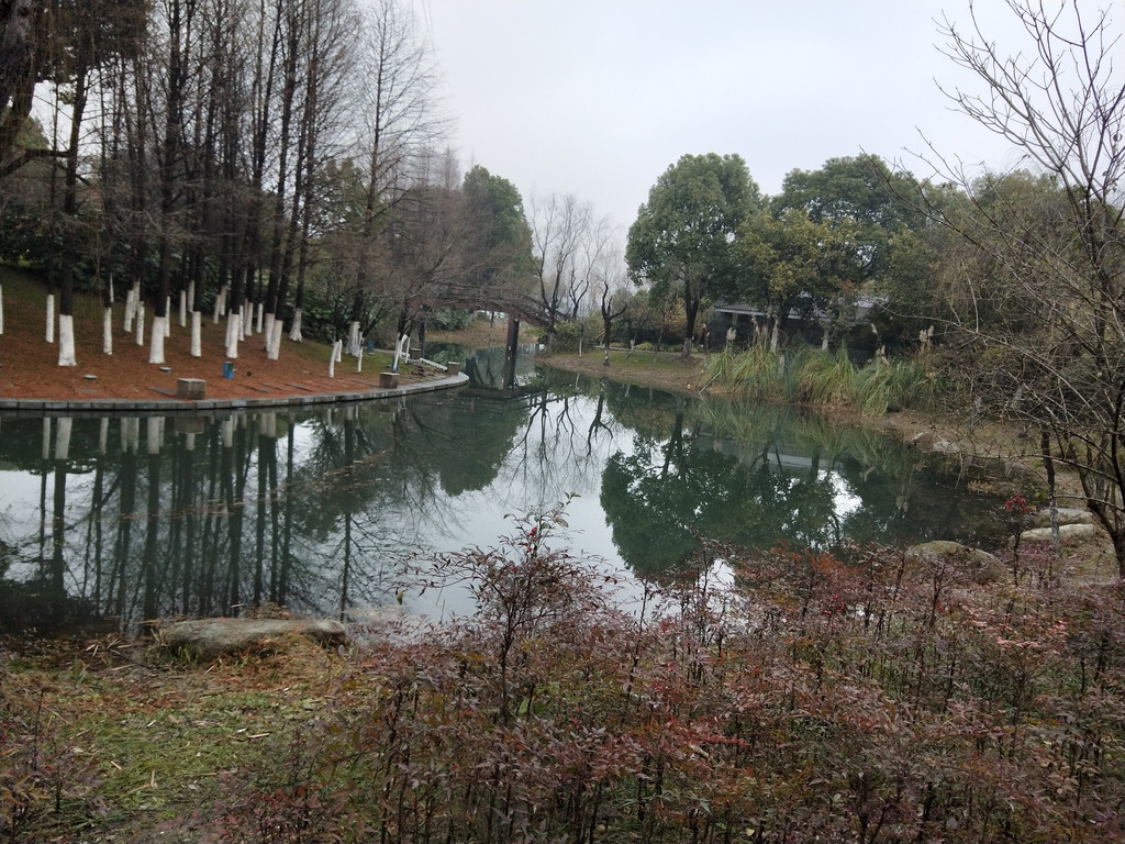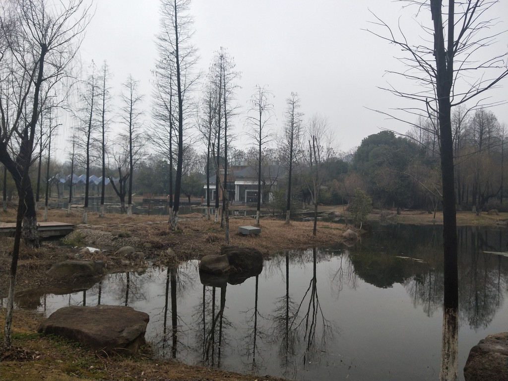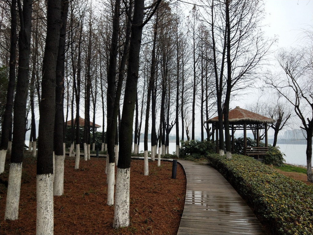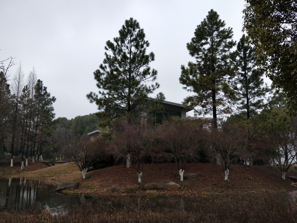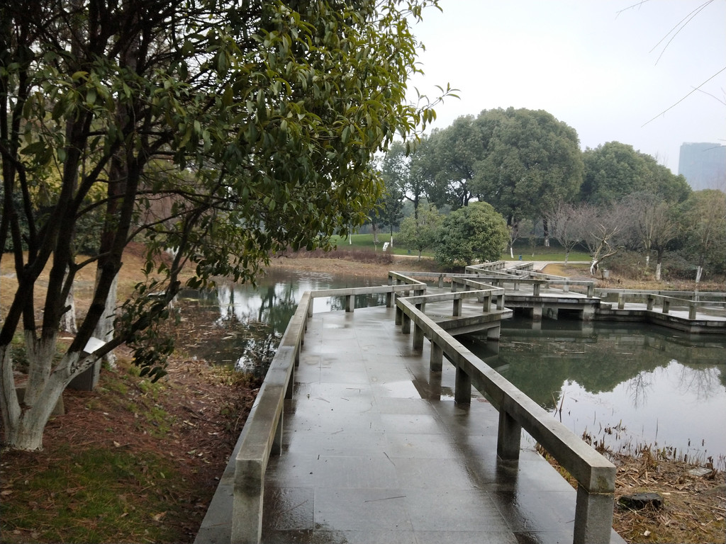从酒店后面的桥上,可以通往小绿岛。岛虽然不大,看起来颇有些像酒店后花园的样子。沿着小岛转了一圈,步道是木栈道。除了一些亭子和杉树外,不过是占着四周环水的便宜,所以看着倒也有些清秀的味道。当然,下着微雨的初春天气,岛上绝对的清静,散个步思考些人生问题啥的,真是一个绝好的去处。