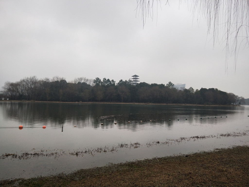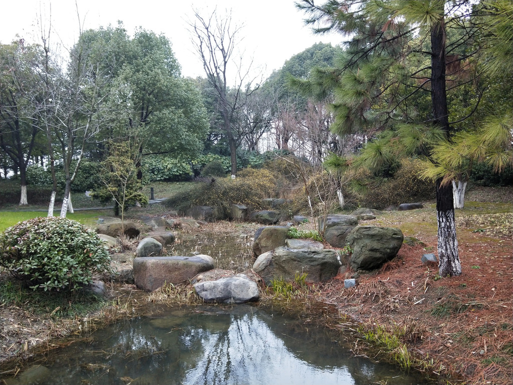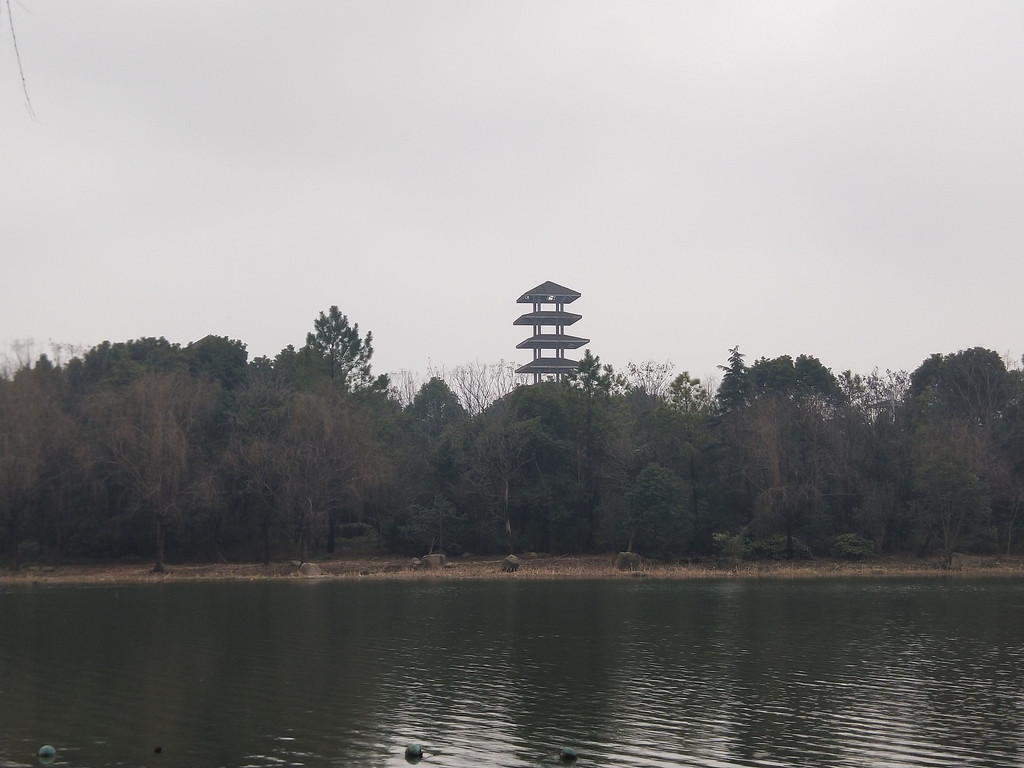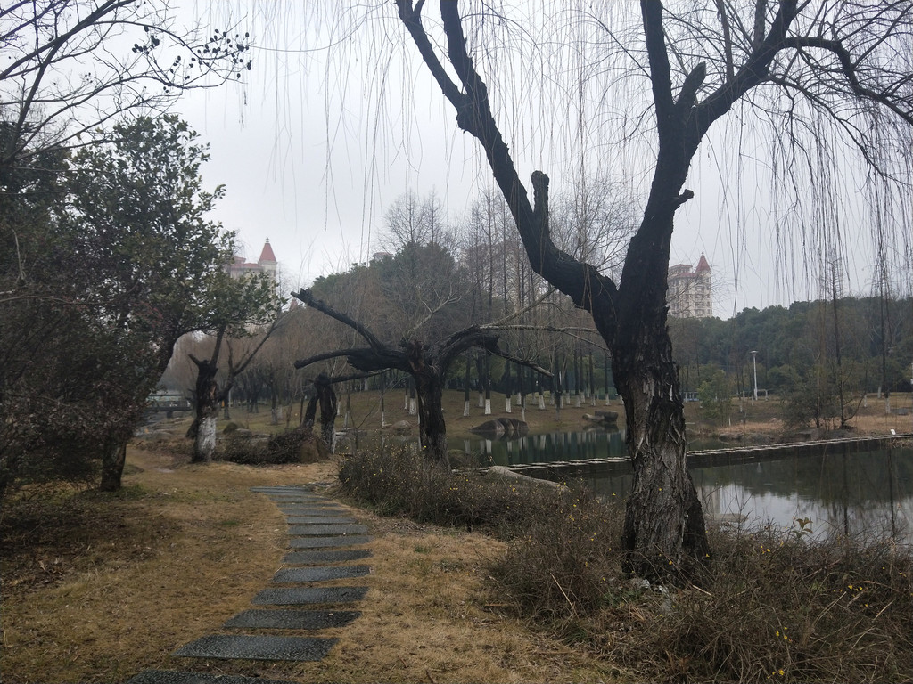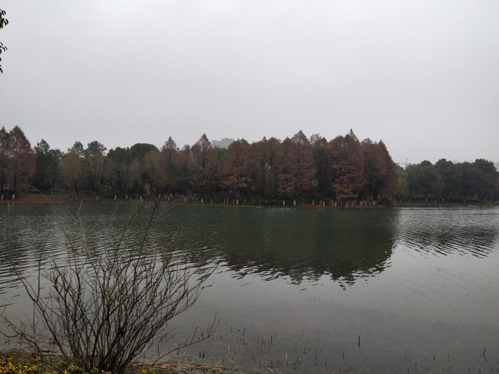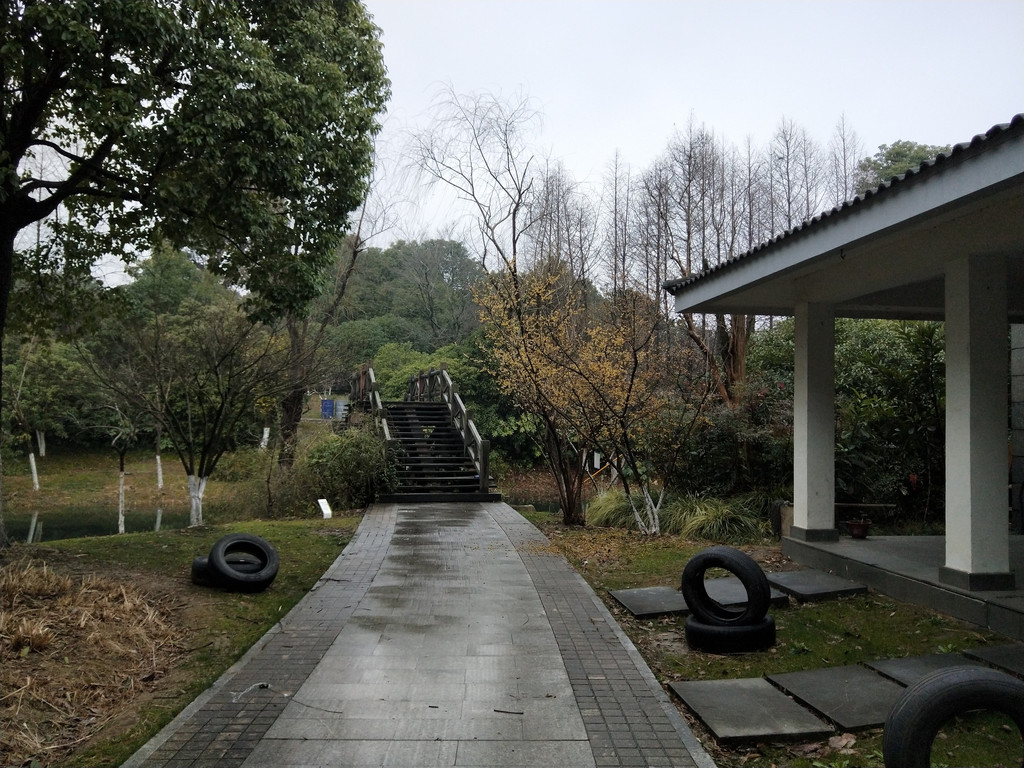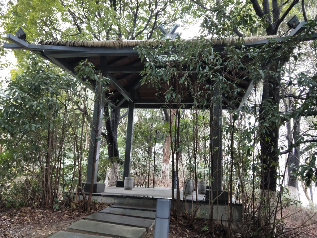 从酒店后面的桥上,可以通往小绿岛。岛虽然不大,看起来颇有些像酒店后花园的样子。沿着小岛转了一圈,步道是木栈道。除了一些亭子和杉树外,不过是占着四周环水的便宜,所以看着倒也有些清秀的味道。当然,下着微雨的初春天气,岛上绝对的清静,散个步思考些人生问题啥的,真是一个绝好的去处。