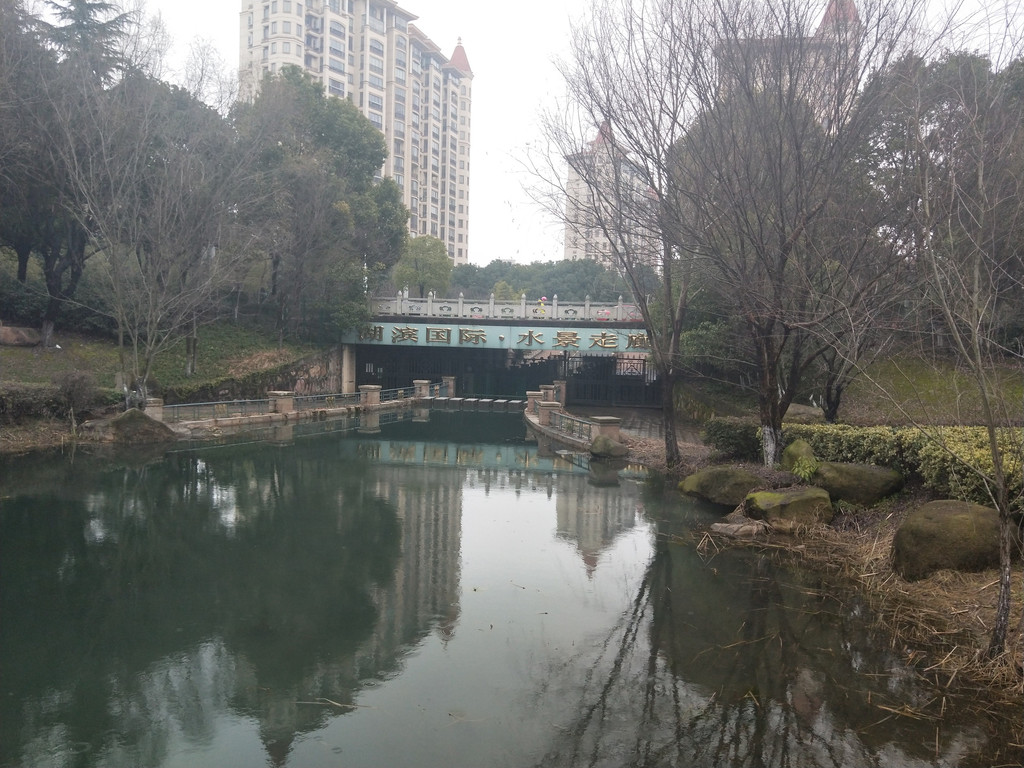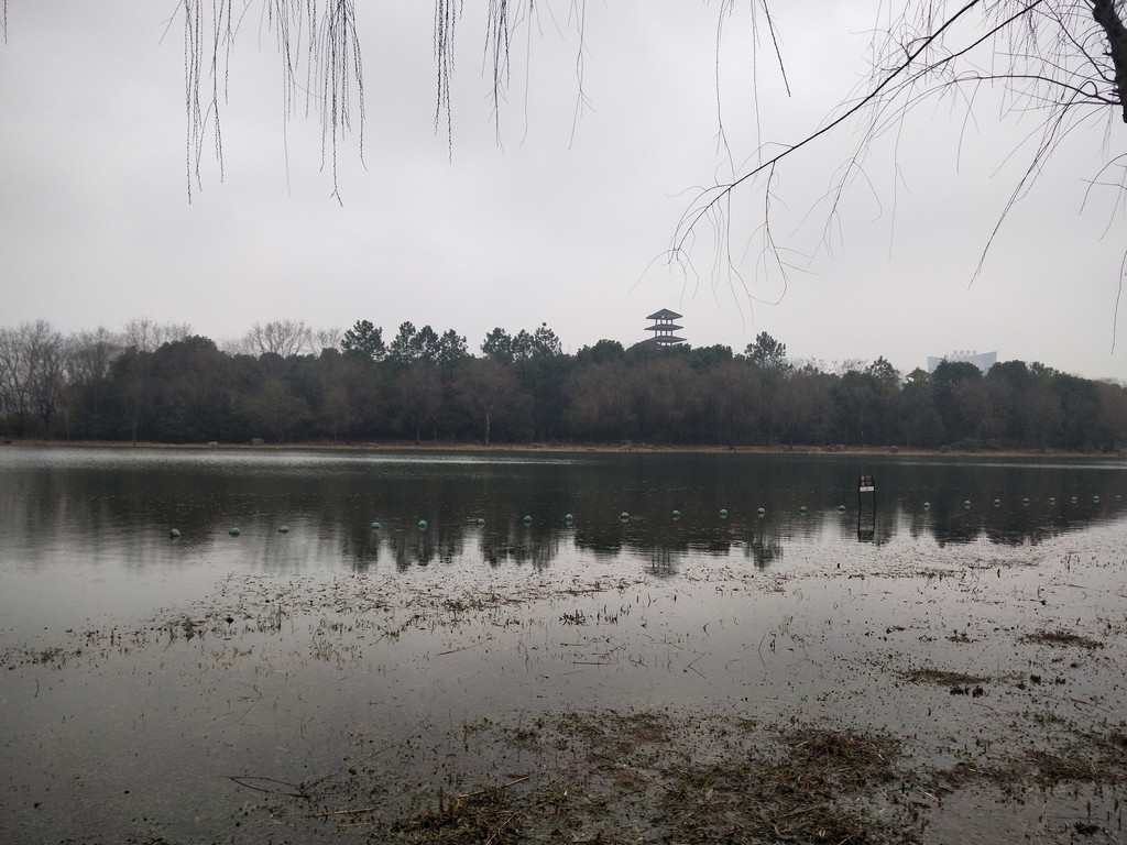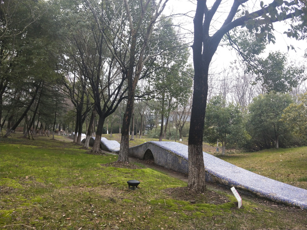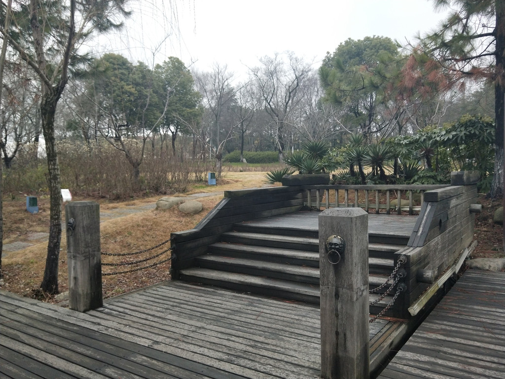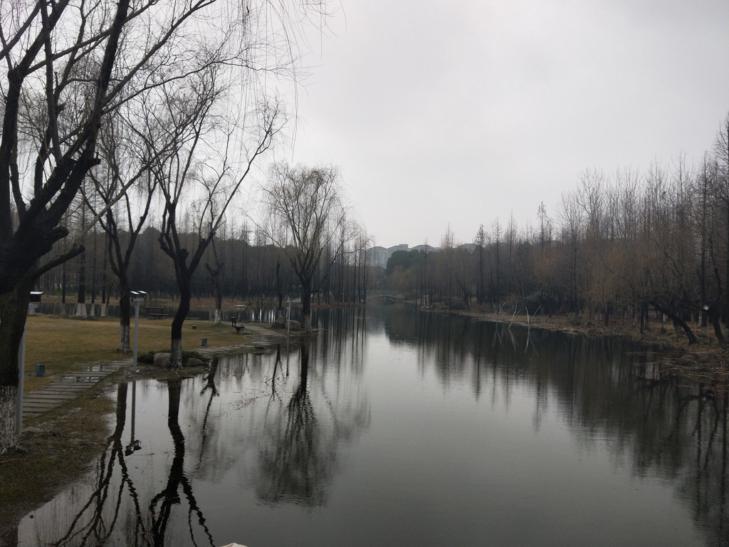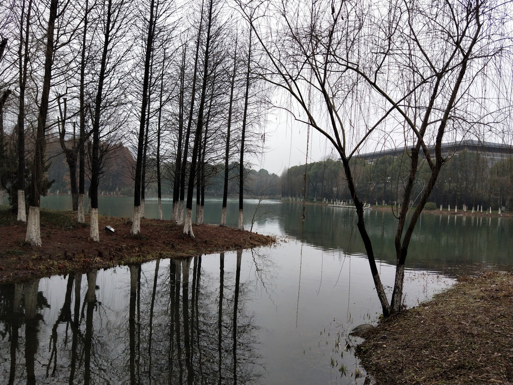 从酒店后面的桥上,可以通往小绿岛。岛虽然不大,看起来颇有些像酒店后花园的样子。沿着小岛转了一圈,步道是木栈道。除了一些亭子和杉树外,不过是占着四周环水的便宜,所以看着倒也有些清秀的味道。当然,下着微雨的初春天气,岛上绝对的清静,散个步思考些人生问题啥的,真是一个绝好的去处。
