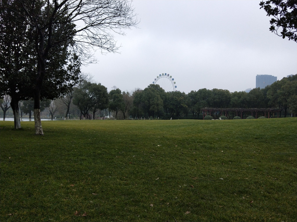 走过湖滨国际·湖滨走廊,有一片大草坪。虽说冬暮春初的气候,还有些青黄不接的样子,但大片的绿色,还是很养眼的。