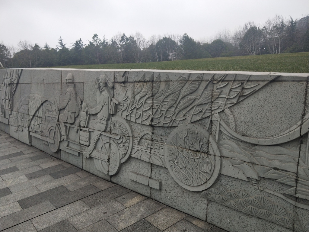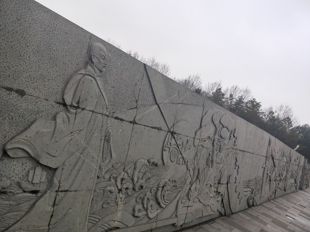 旁边有一座浮雕,用现代风格刻画了筑路成湖、湿地风情、荷花栈道、鹭洲塔影、玉树临风、镜湖望月、暨阳放歌、濒水之乐等八大景观,这也是暨阳湖生态区的八大景区了。