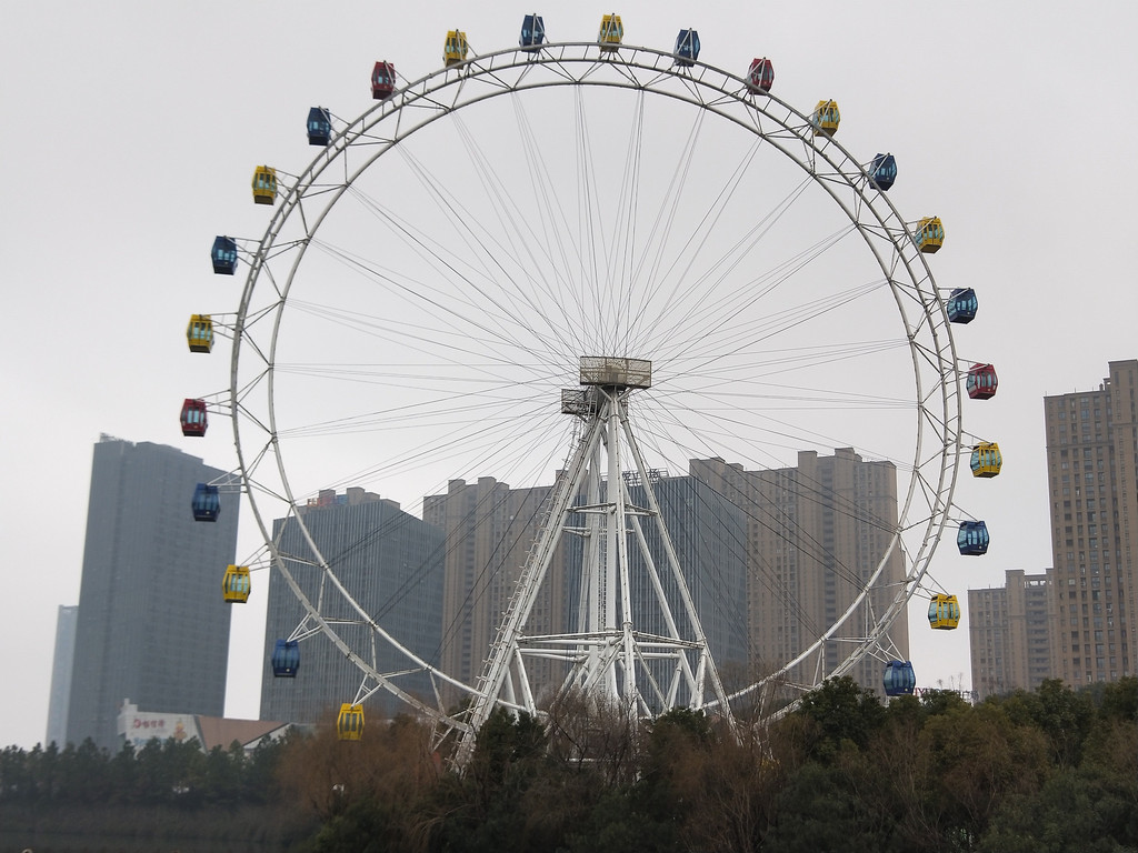 摩天轮无疑是最醒目的,看到它近在眼前,我们就知道已经走近欢乐世界了。看样子,这座欢乐世界的规模还挺大,不过我们都已经过了热衷游乐场的年龄,只是感慨了一下岁月不饶人,便过其门而不入地继续往前走了。