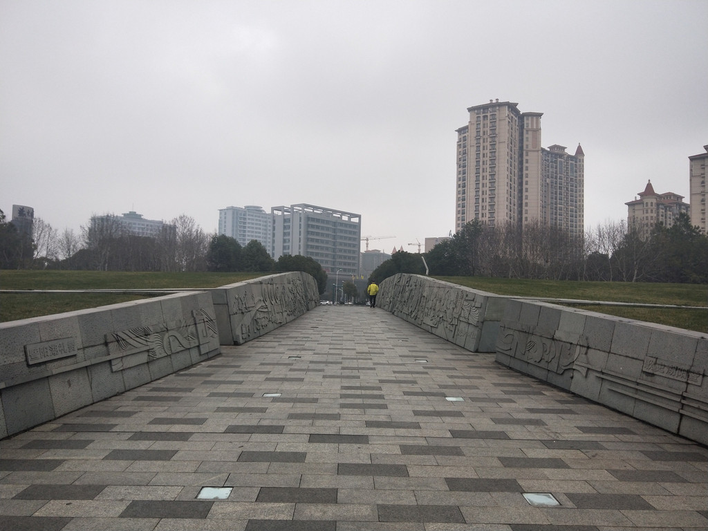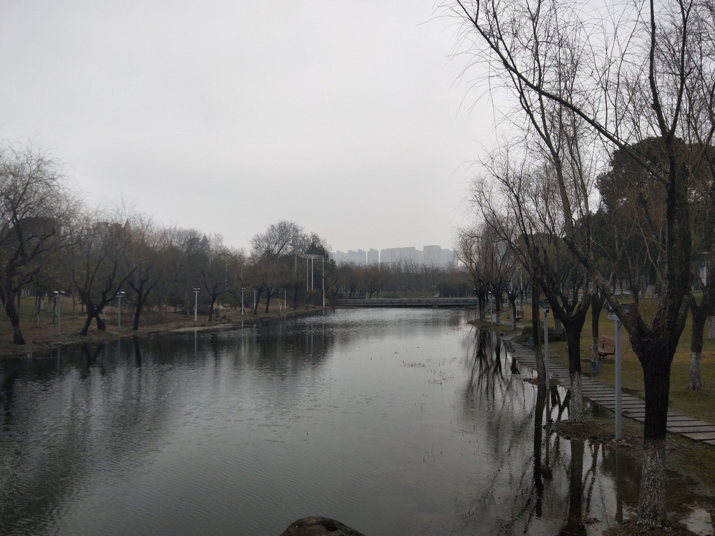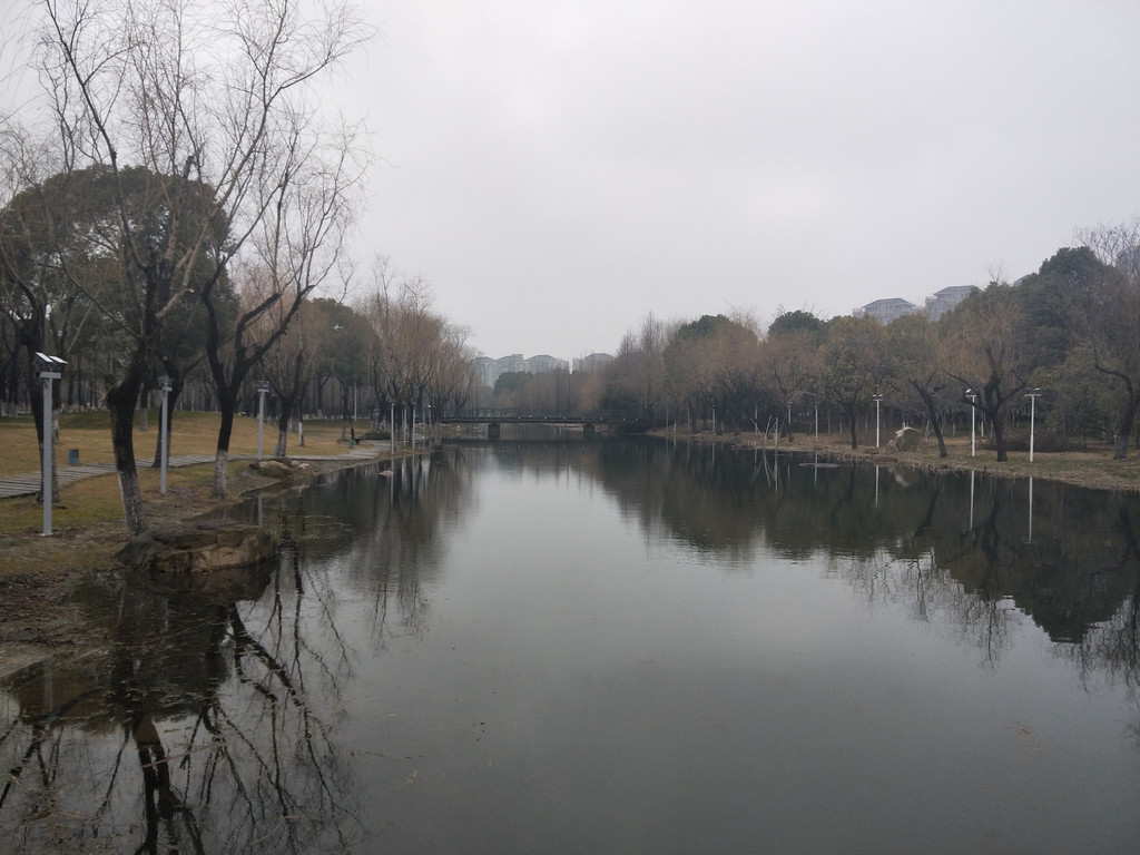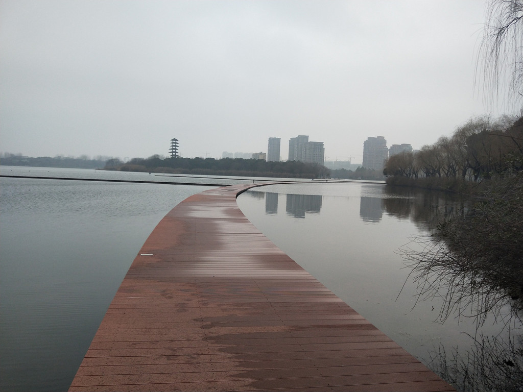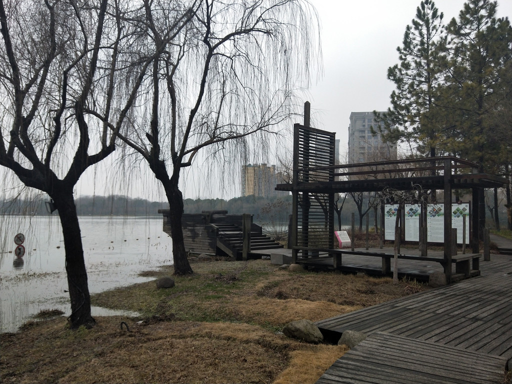 一侧是清荷栈道,现在当然看不出荷花的风姿,残荷也被清理得很干净,不知道这片荷花有多大的规模。这处景点有一个好听的名字,叫“枕荷清梦”。到得炎炎夏日,在这里枕一塘荷香,做一枕清梦。