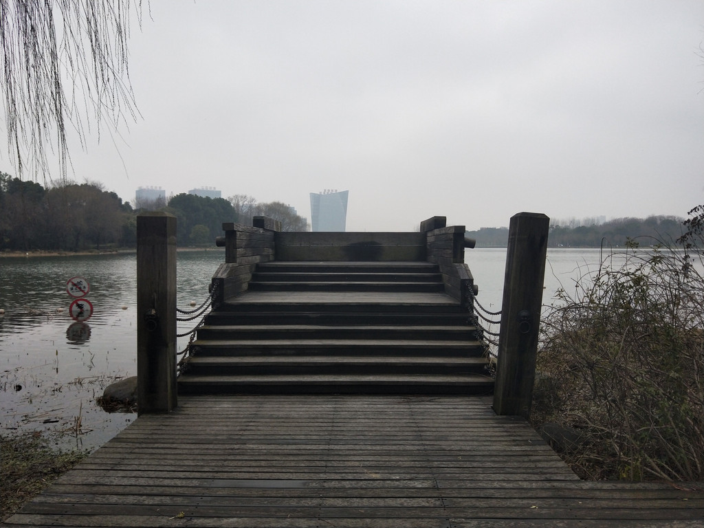 走过暨阳湖大桥,就是镜湖景区了。虽说以前把这里角角落落都转了个遍,但明月栈道还是要走一走的。