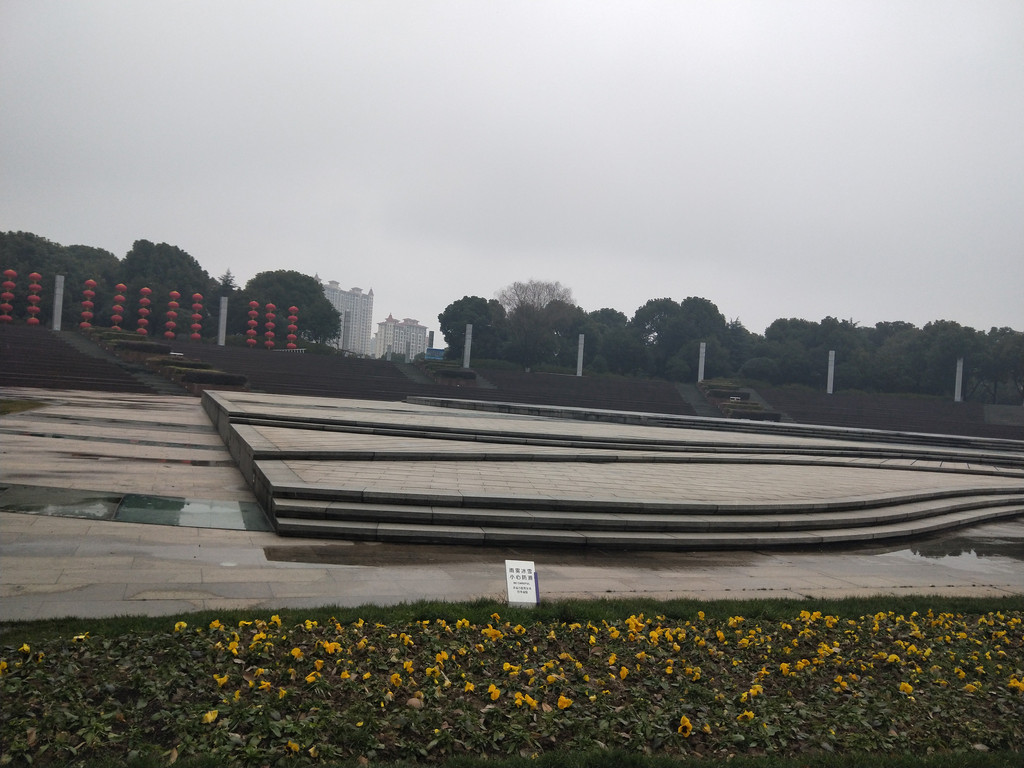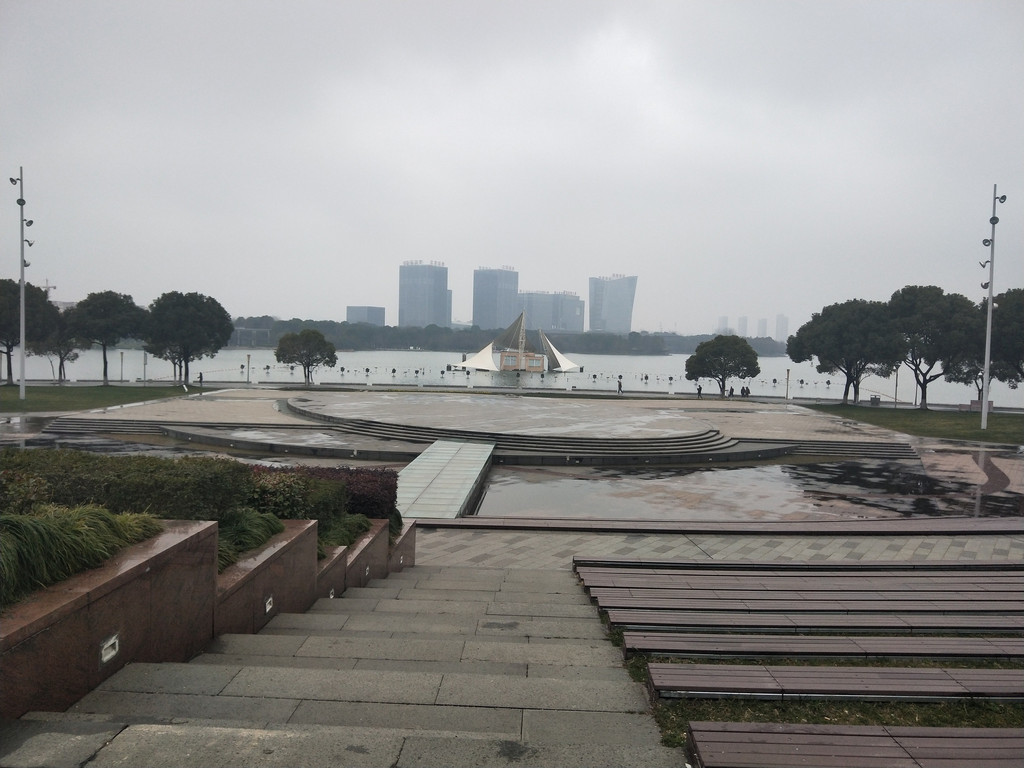继续往前走到湖滨,这里就是假日广场景区,临湖有座挺大的广场,虽然没有什么坡度,但也有长长的阶梯,看着还挺气派。