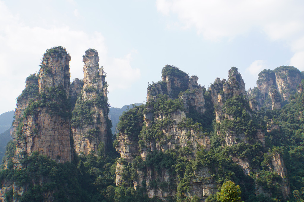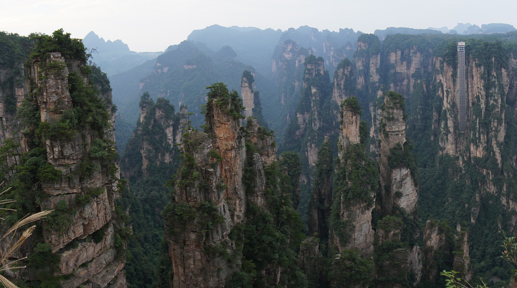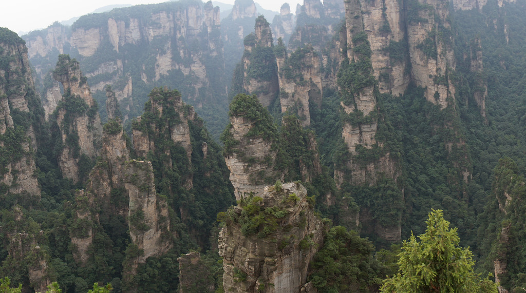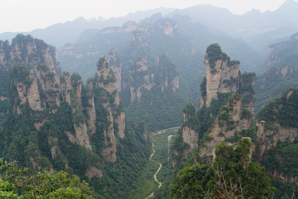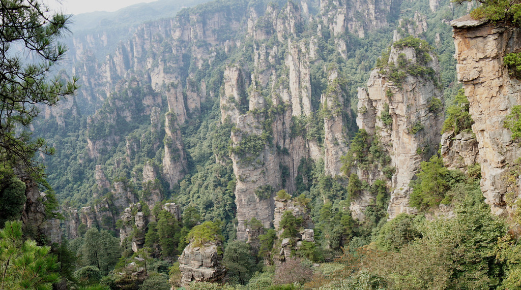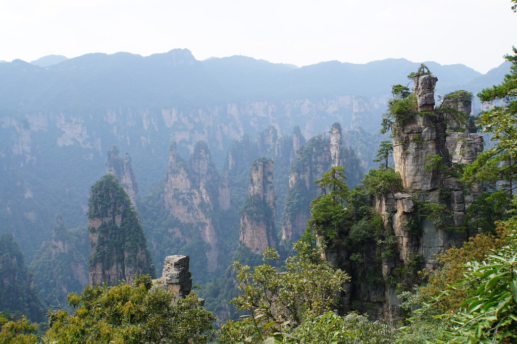 袁家界景区是一个山地高台,这里树木茂盛,有雾气弥漫、群峰叠嶂的美景。同时,也是电影《阿凡达》中的悬浮山“哈利路亚山”的取景地。