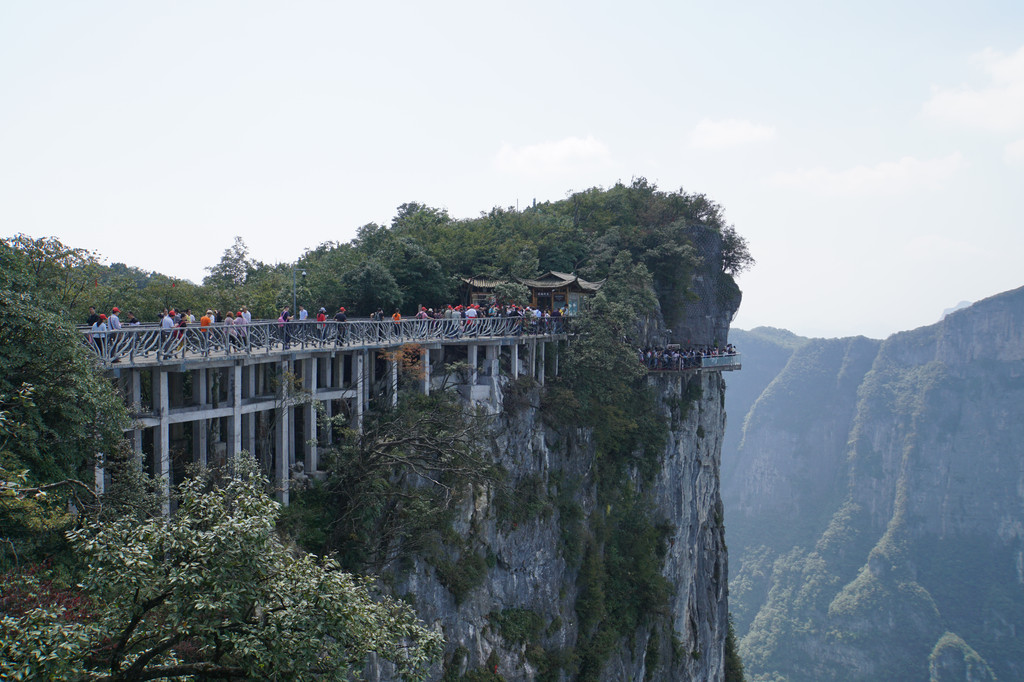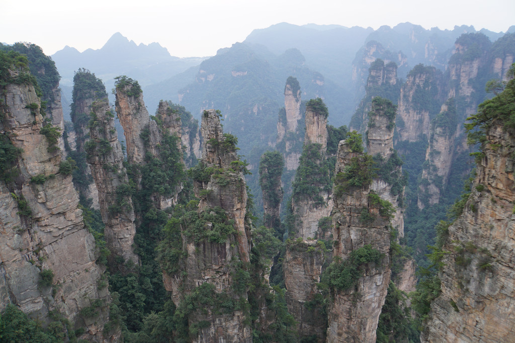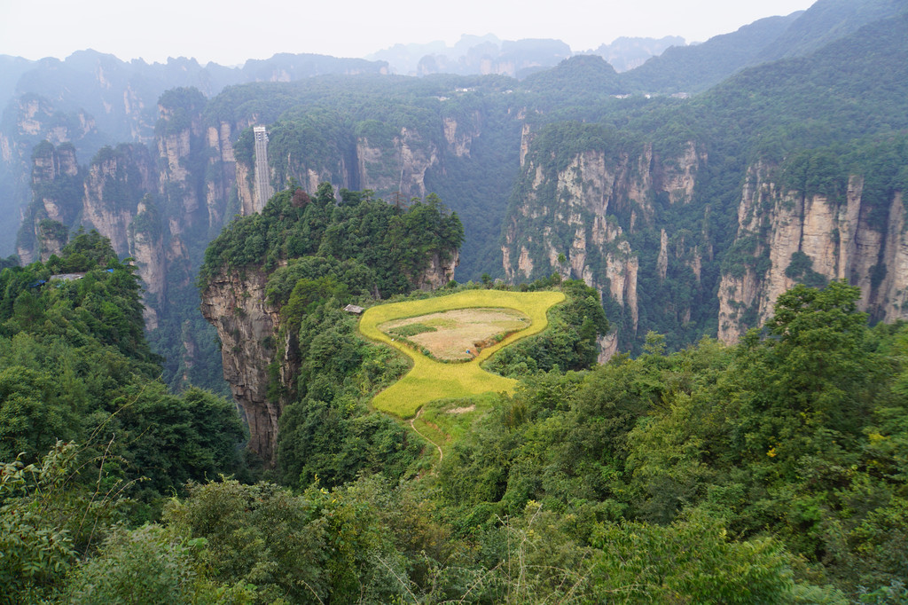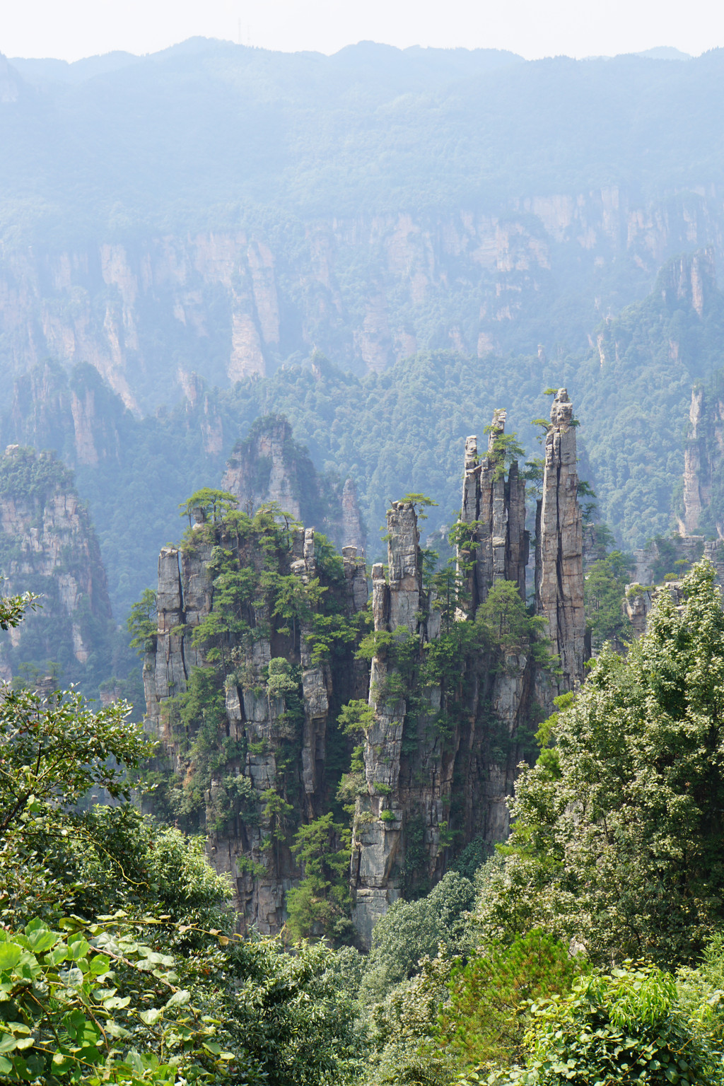 袁家界景区是一个山地高台,这里树木茂盛,有雾气弥漫、群峰叠嶂的美景。同时,也是电影《阿凡达》中的悬浮山“哈利路亚山”的取景地。