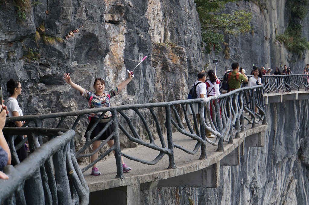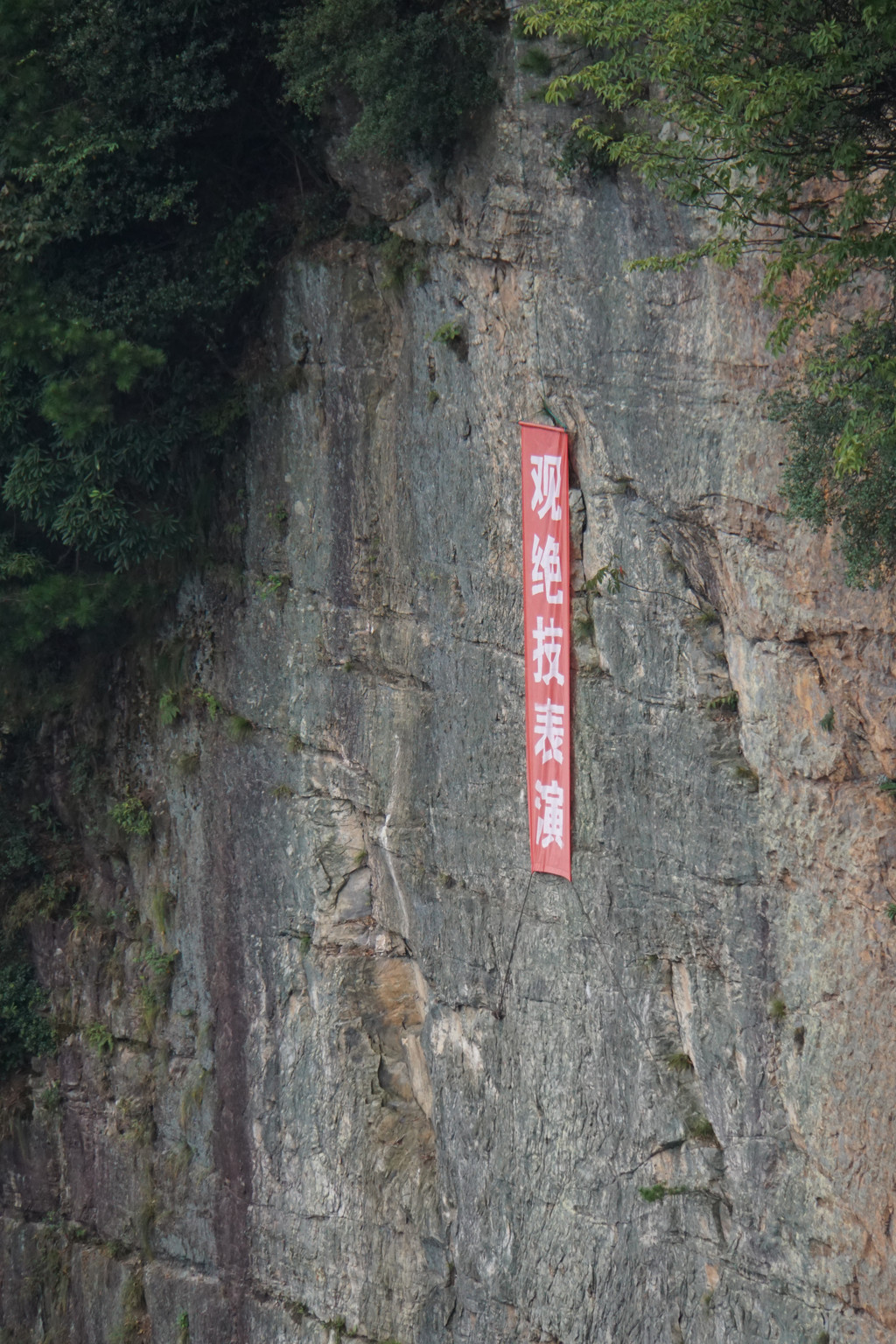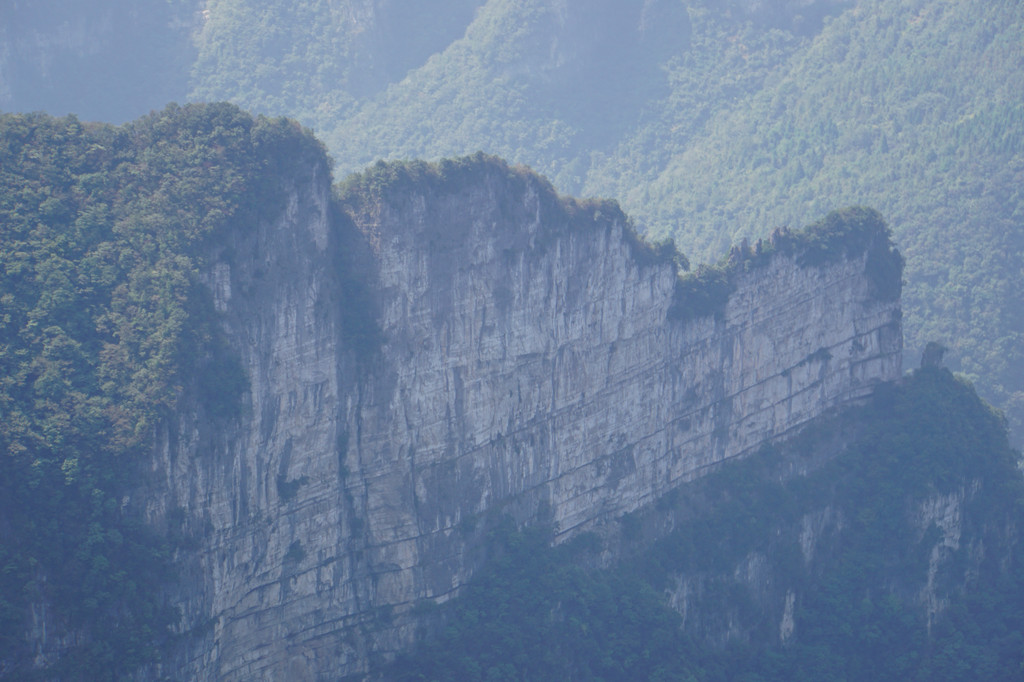 “天然长城”观景台处观天然峰墙。其中知名景观有一步登天、空中走廊、龙泉飞瀑、绝壁藤王、白鹤聚会等二百余处,最高峰“一步登天”海拨1130米。