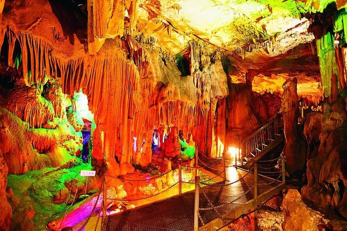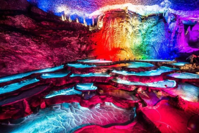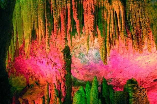张家界自由行攻略形态各异的钟乳石是洞中的另一个亮点,石笋、石柱、石人、石兽等千姿百态,层层密布,在灯光的衬托下,显得美奂美伦。