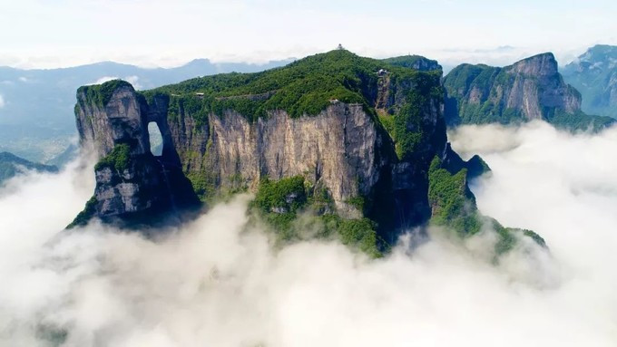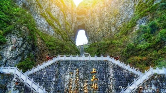 张家界自由行攻略天门山门洞高是世界海拔最高的天然穿山溶洞,大自然的鬼斧神工,就像通过这里就可以和上帝”会面“了似的。