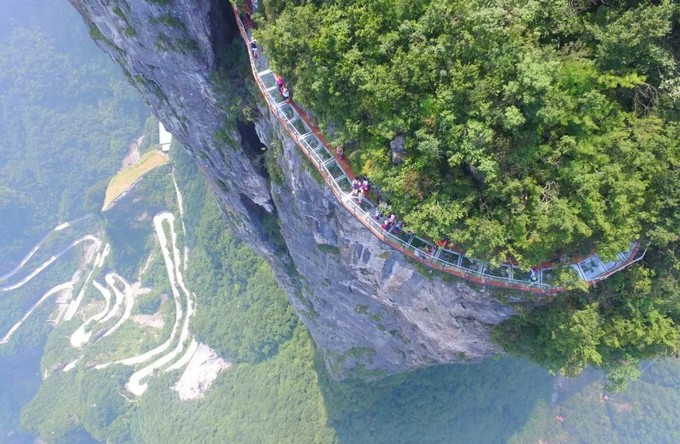 张家界旅游攻略一定要体验建在悬崖峭壁上的玻璃栈道,看到脚下的万丈深谷,胆战心惊之余,感受凌空行走的快乐,这也是谢娜她们挑战的项目哦。