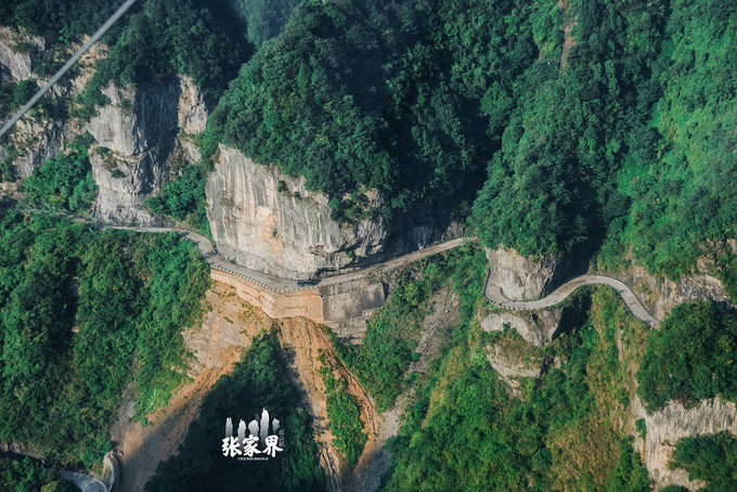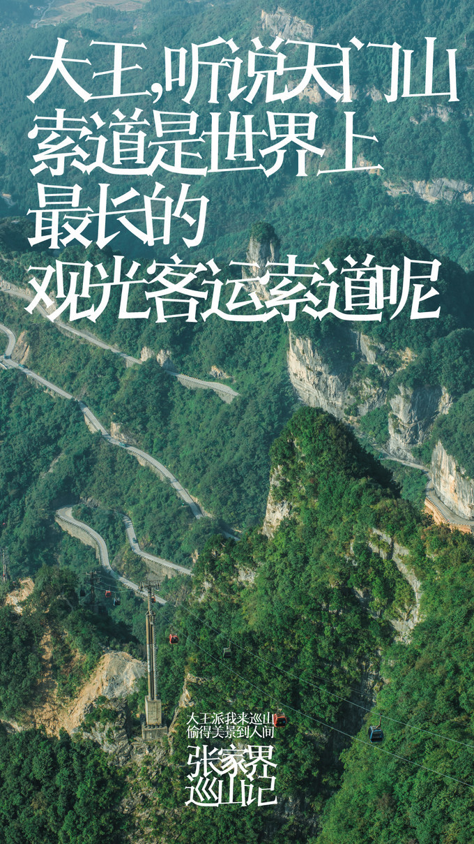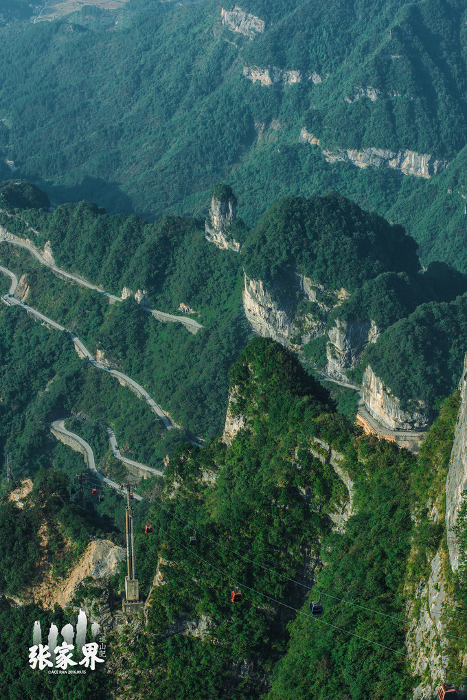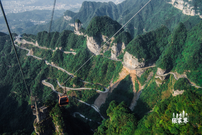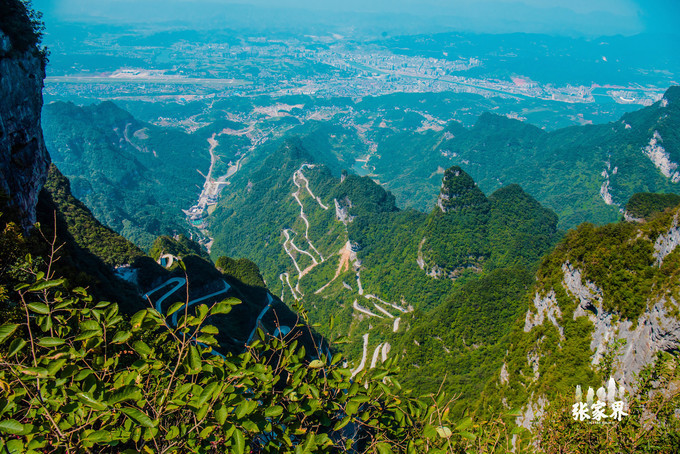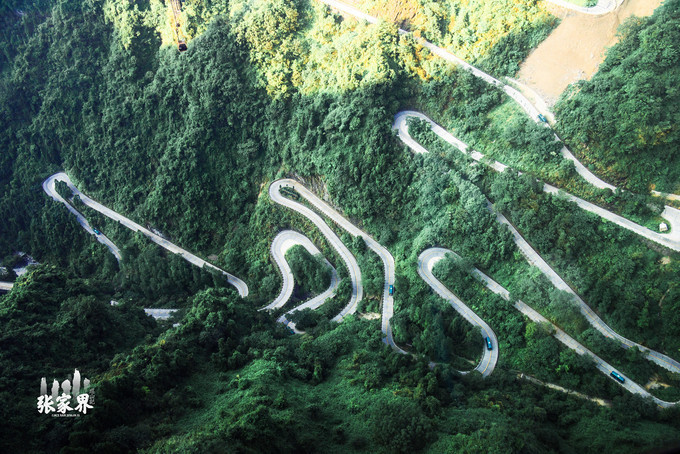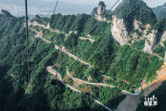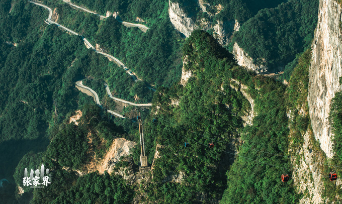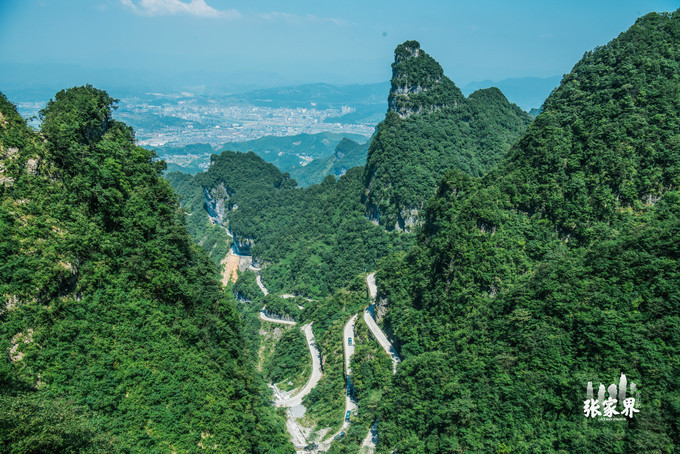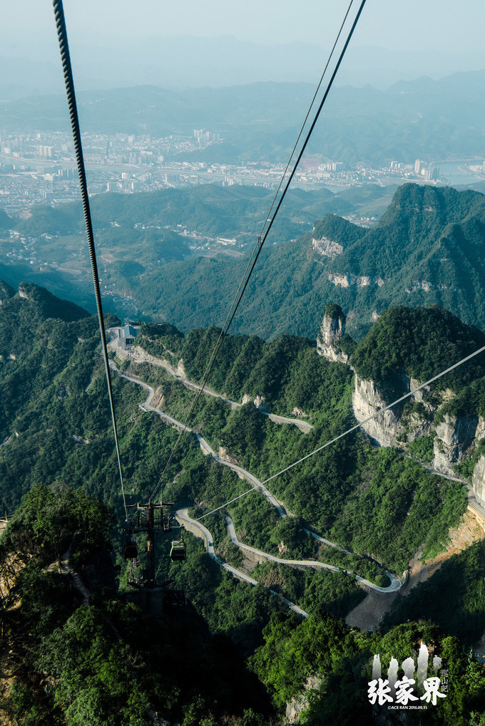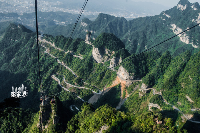 张家界天门山景区张家界天门山景区这是刚才坐车上来的99道弯的 盘山 公路,如此之惊险。